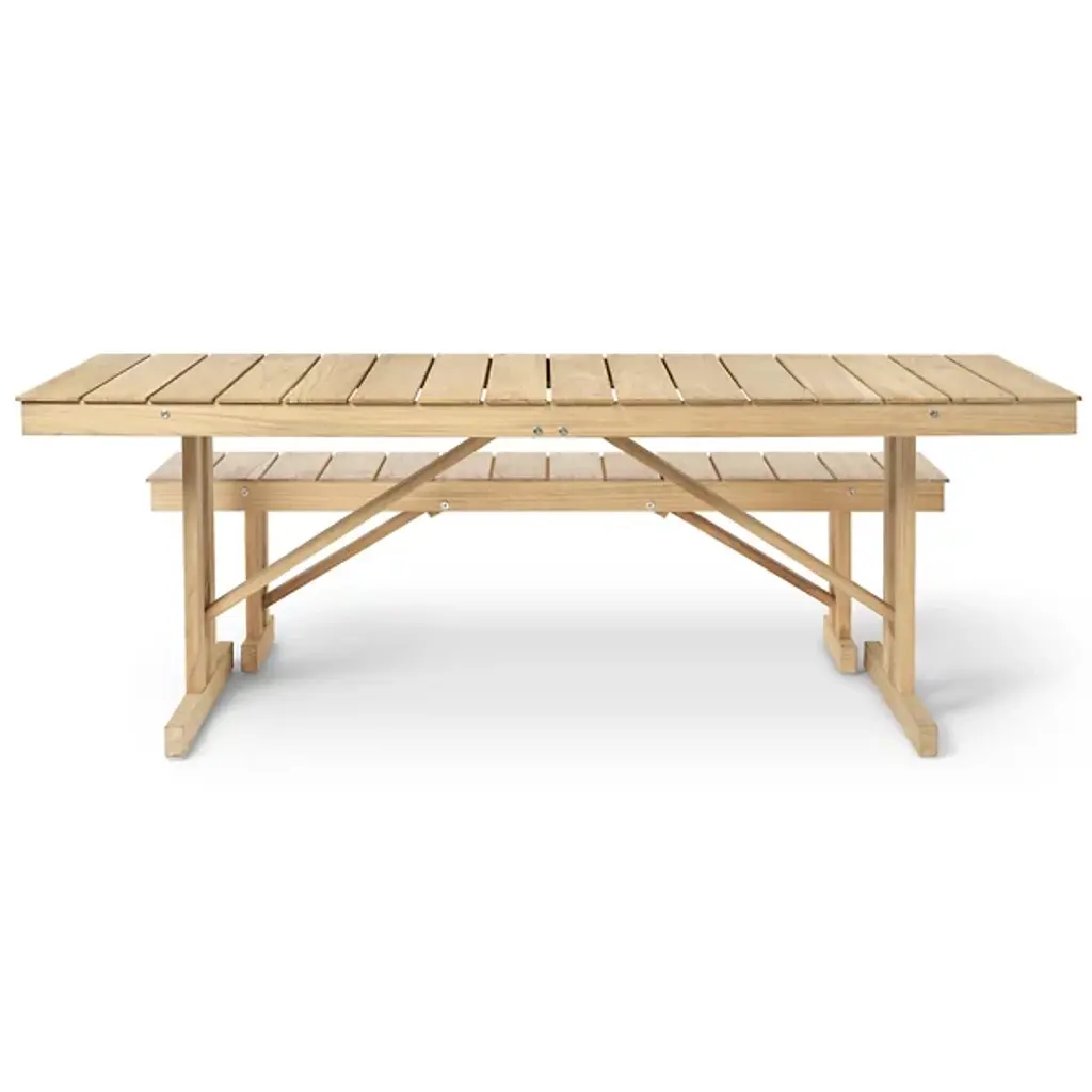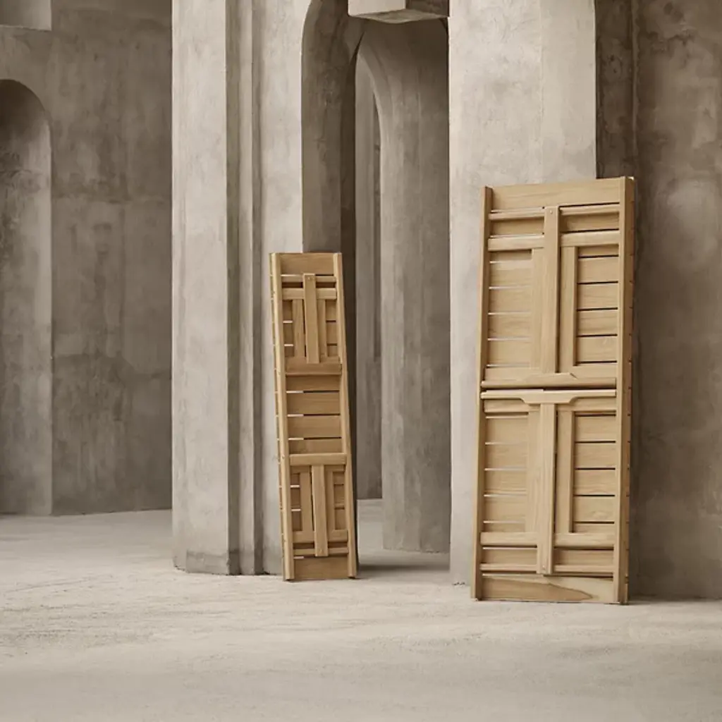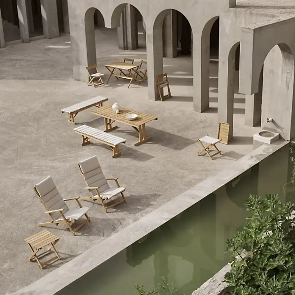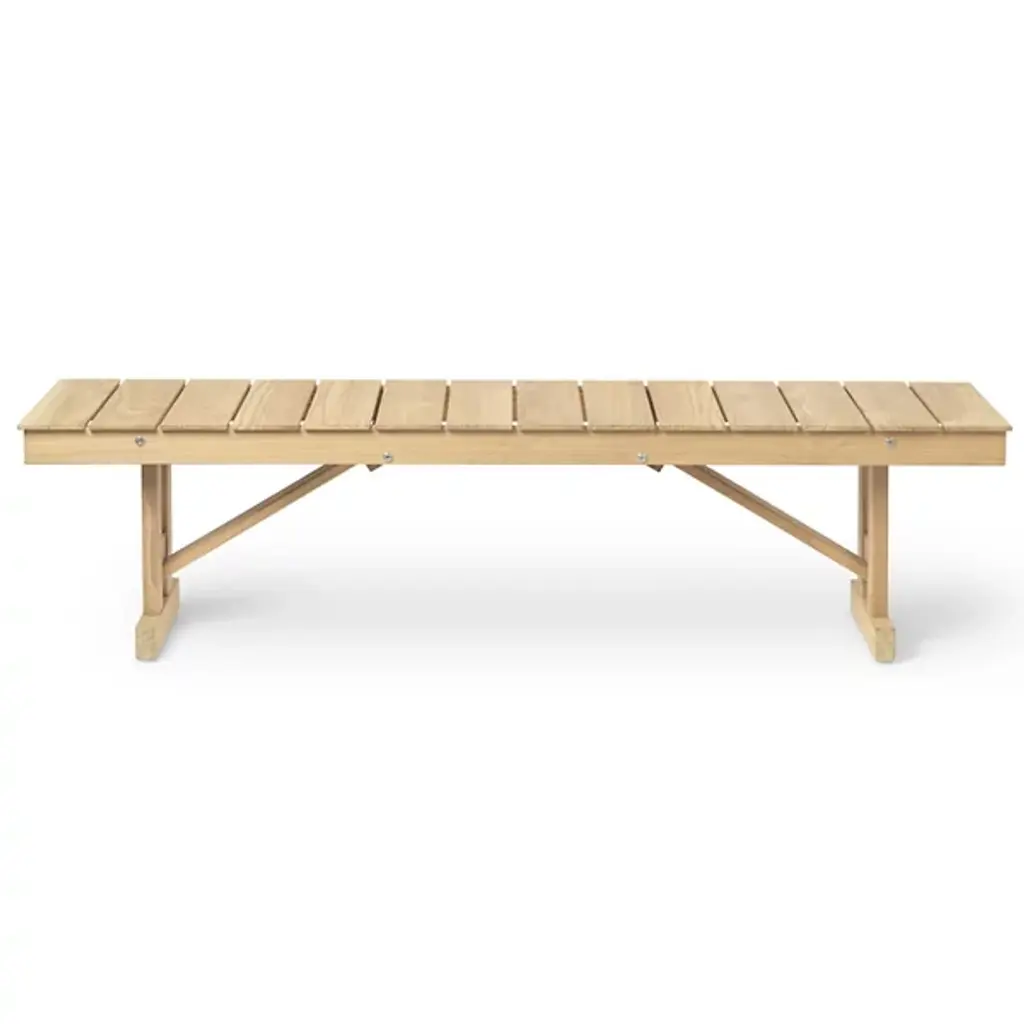 Accentuate your outdoor spaces with the BM1871 Outdoor Bench from Carl Hansen. A revival of a classic design created in 1971 by Børge Mogensen, it is made in Vietnam out of teak specifically certified for strength. The structure stands on two braced legs that can fold away for compact storage, while the bench surface itself is topped by a series of short, spaced slats that lend a lighter, natural note to the broad seating area.