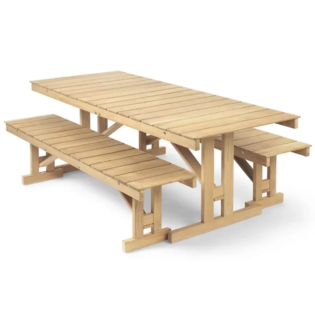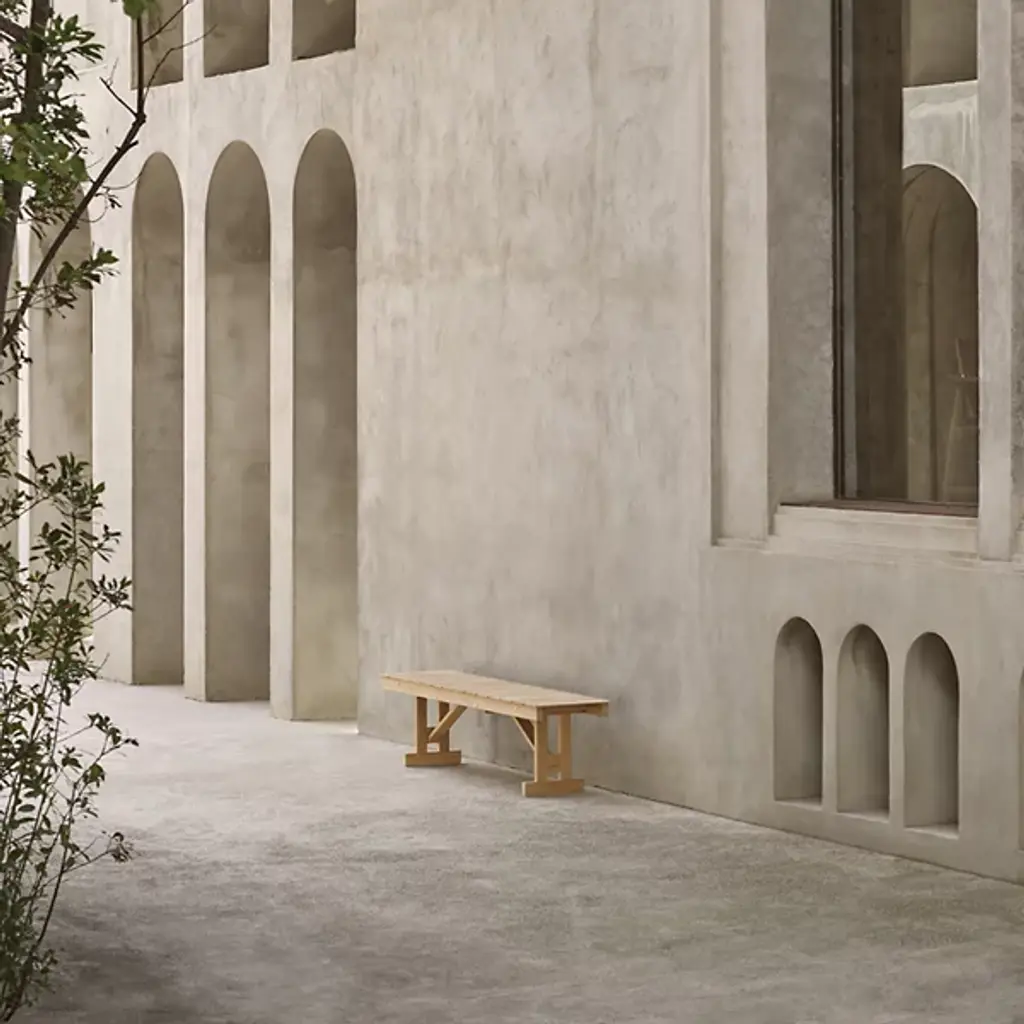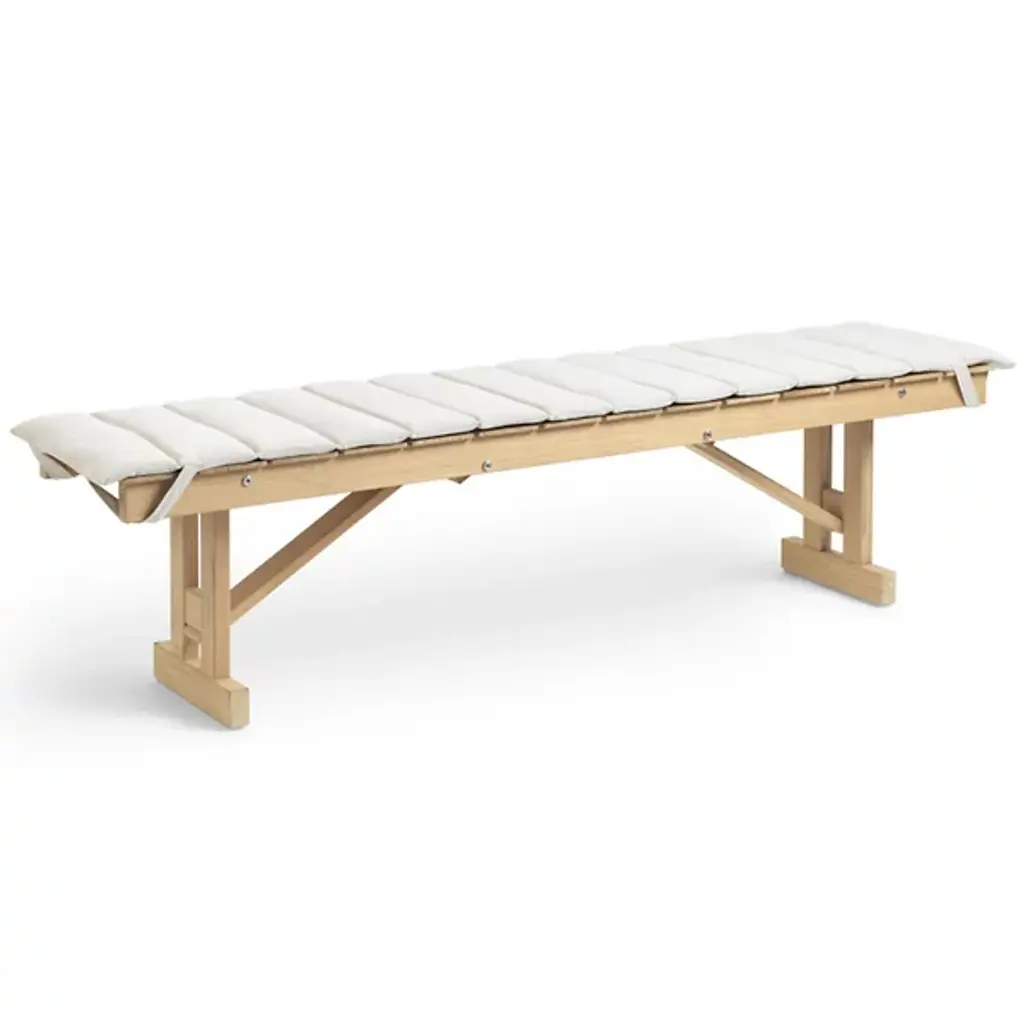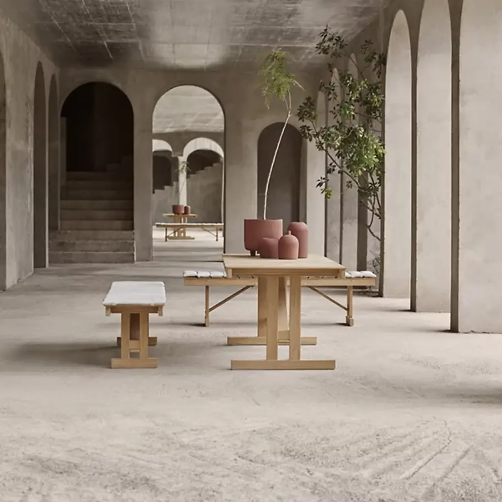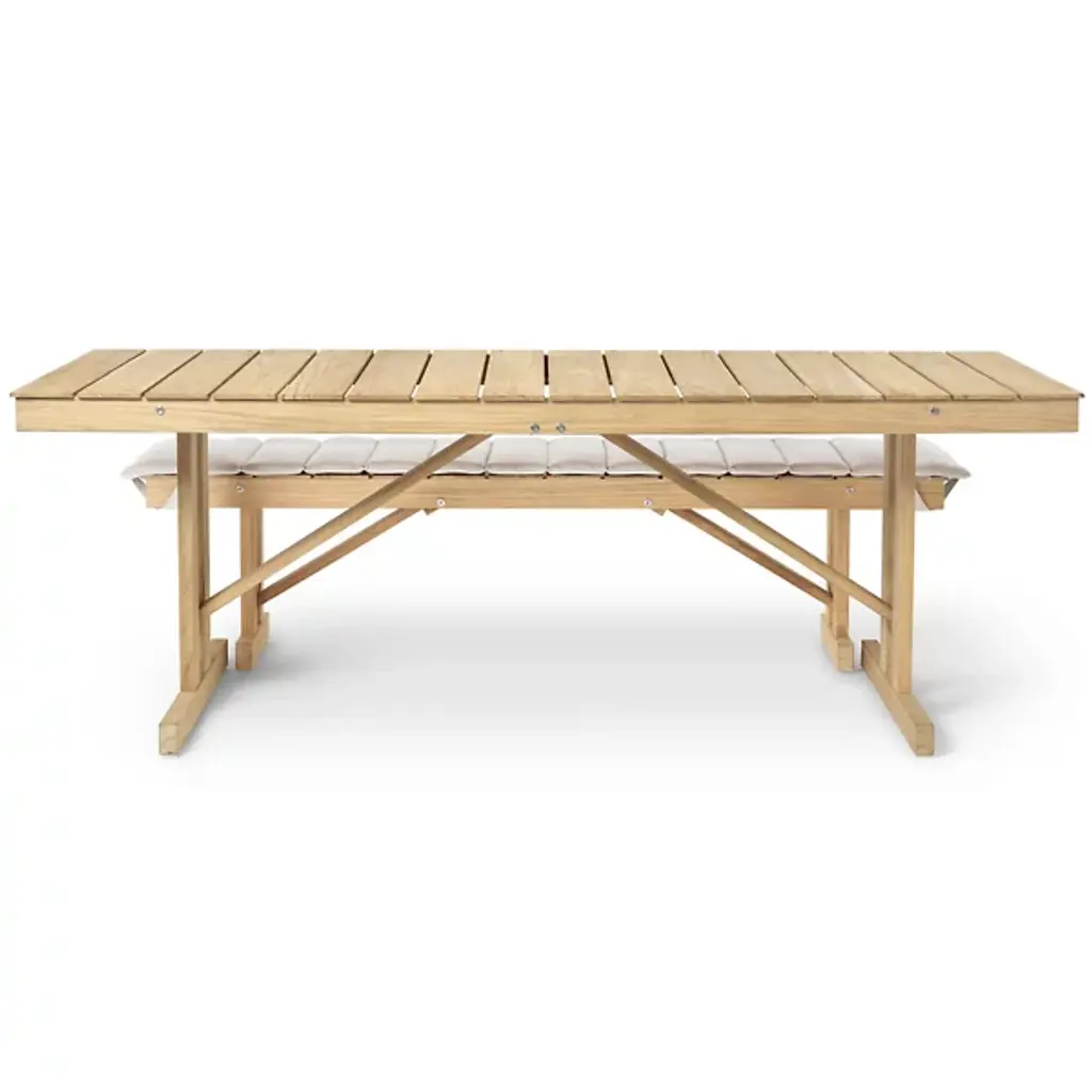 Accentuate your outdoor spaces with the BM1871 Outdoor Bench from Carl Hansen. A revival of a classic design created in 1971 by Børge Mogensen, it is made in Vietnam out of teak specifically certified for strength. The structure stands on two braced legs that can fold away for compact storage, while the bench surface itself is topped by a series of short, spaced slats that lend a lighter, natural note to the broad seating area.