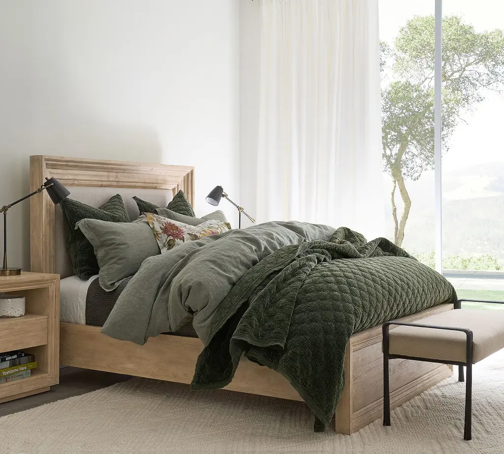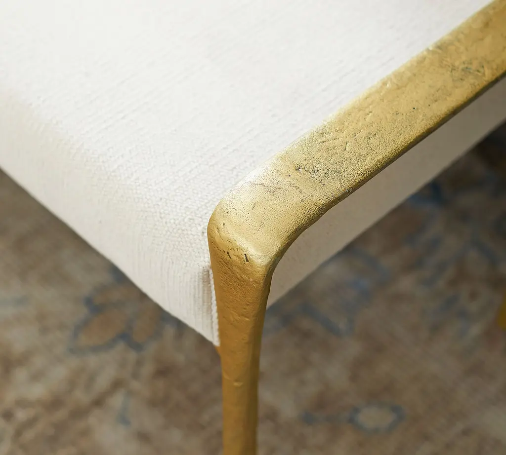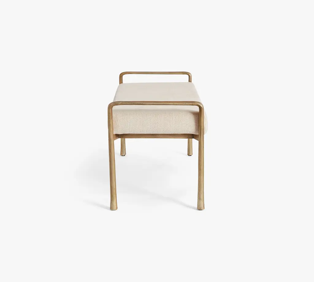 Upholstered in a flax-hued fabric and resting on a highly textured cast-metal frame, our Bodhi Collection is a chic addition to any room of the home. This versatile bench is ideal for extra seating or as a perfect spot to stack your current reading list or keep a cozy throw handy. This product is proudly made at a Fair Trade Certified™ factory.