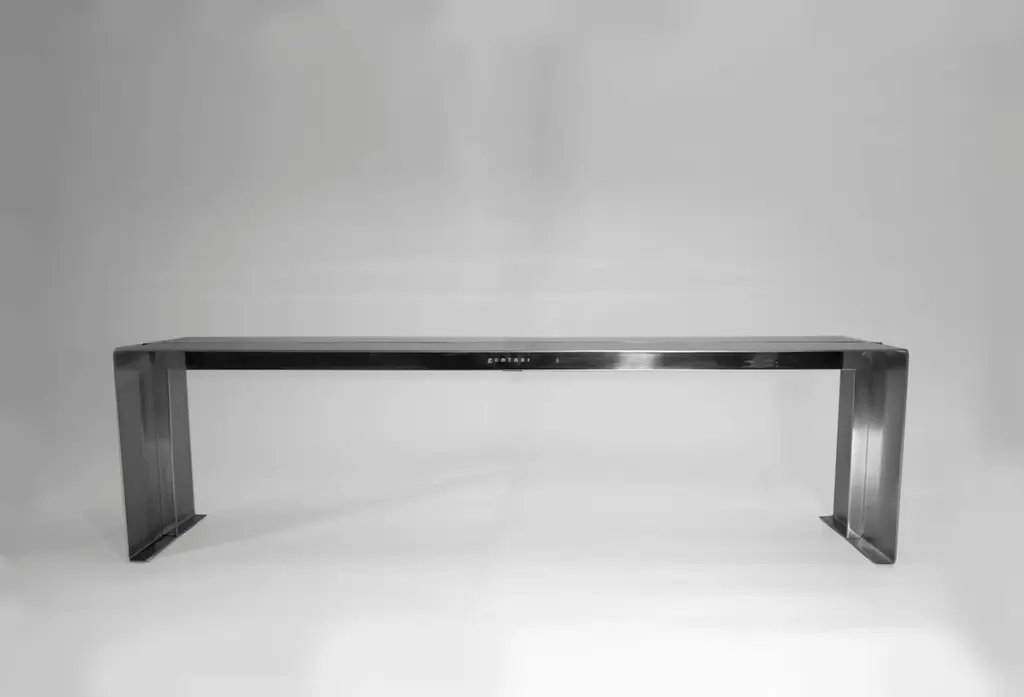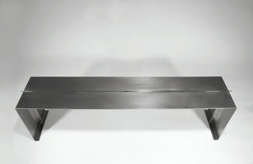 Bond bench by Gentner DesignDimensions: D 152 x W 35.5 x H 45.7 cmMaterials: stainless steelA subtle mix of polished and brushed stainless steel, this bench is about attention to detail. The simple T-shape structure is simplicity at its best with the polished blade passing through the bench seat while the rest is a matte, brushed finish.Gentner DesignRooted in a language of sculpture, character defining details, and world renowned craftsmanship, the work is found at the crossroads of design and art.Established in 2011, the namesake furniture label is a rare combination of aesthetic dexterity and mastery of craft resulting in furniture and objects that are expressive, formal, and transcend materiality.The collection is based in metal and incorporates only natural materials such as leather, wood, and glass in unique ways, challenging our assumptions.Christopher GentnerChristopher Gentner, with a BFA in metalsmithing from the Cleveland Institute of Art and apprenticeships under sculptors and jewelers, together with dedication to craft, quickly developed his reputation nationally as a foremost authority of metal fabrication and furniture.One of his crowning achievements was the re-creation and fabrication of the Frank Lloyd Wright Robie House gates.These unique experiences are the foundation of his design philosophy which he employs in his own line of furniture, lighting, and objects.