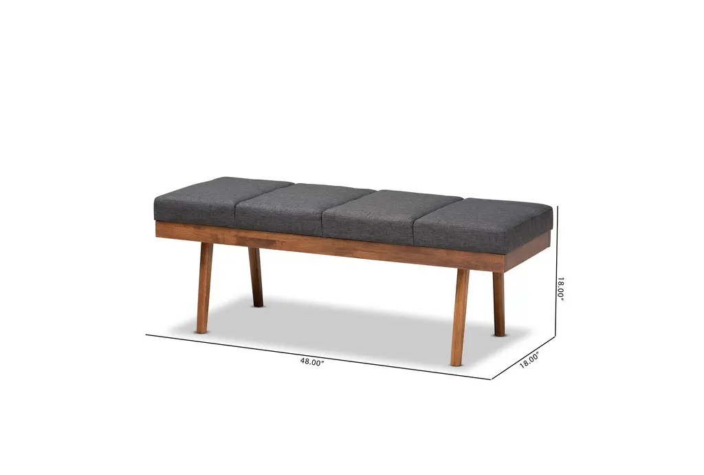 The Boudica Charcoal Fabric Upholstered Wood Bench is a stylish and functional addition to any modern home. Its sleek design and high-quality materials make it a perfect choice for those who appreciate both form and function. The bench's charcoal fabric upholstery and solid rubberwood construction ensure durability and comfort.