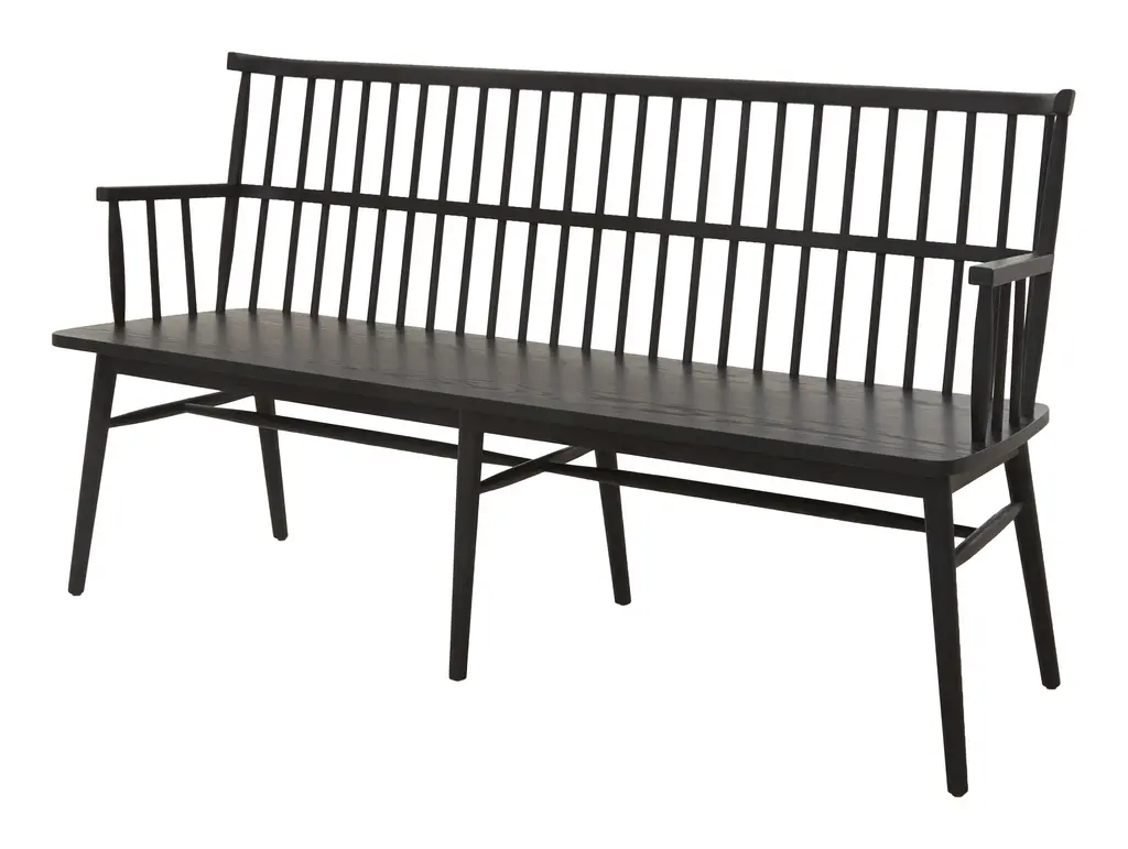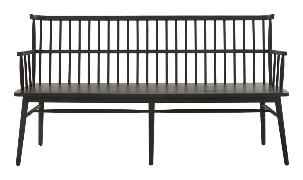 Our Breck Bench is a fresh take on the traditional Windsor silhouette. Crafted from solid parawood, this dining bench pairs clean lines and a classic spindle back with a matte black finish for a sleek, modern touch. Right at home just about anywhere it goes, we love Breck in a farmhouse-chic kitchen or as a welcoming addition to a casual entryway.