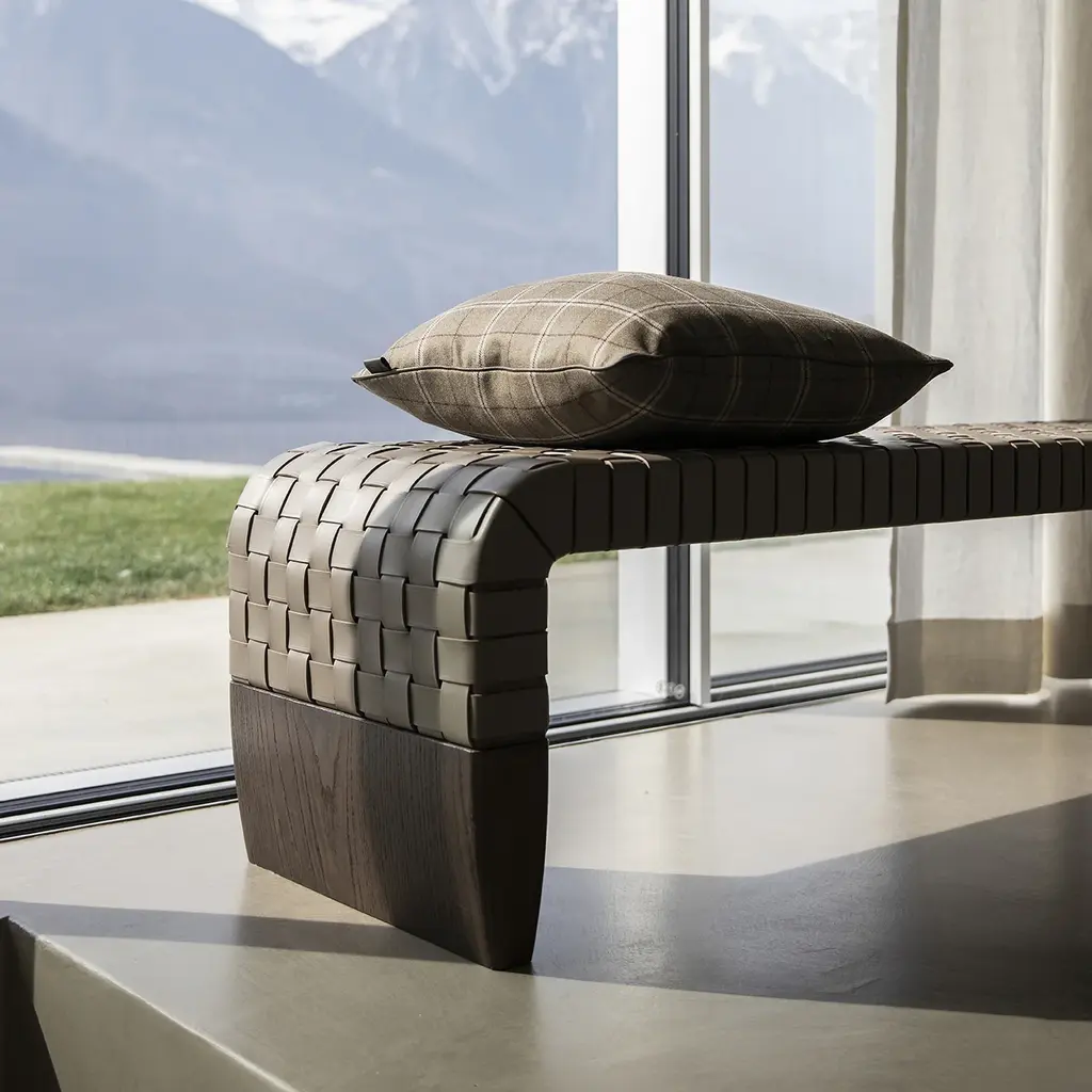 The Brera Bench from Poltrona Frau boasts a sleek and modern design, ready to add luxury to any interior. With a unique leather weave adorning the seat, the hand markings on the 2 mm-thick straps create a geometric and tactile motif, adding a sophisticated touch to any space. With its contemporary silhouette, this bench is the perfect addition to your home or office. Highlights