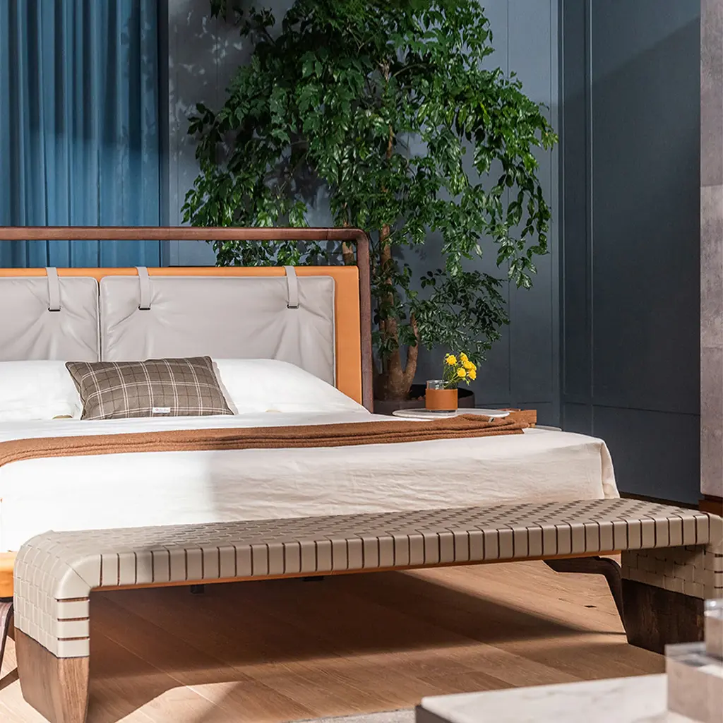 The Brera Bench from Poltrona Frau boasts a sleek and modern design, ready to add luxury to any interior. With a unique leather weave adorning the seat, the hand markings on the 2 mm-thick straps create a geometric and tactile motif, adding a sophisticated touch to any space. With its contemporary silhouette, this bench is the perfect addition to your home or office. Highlights