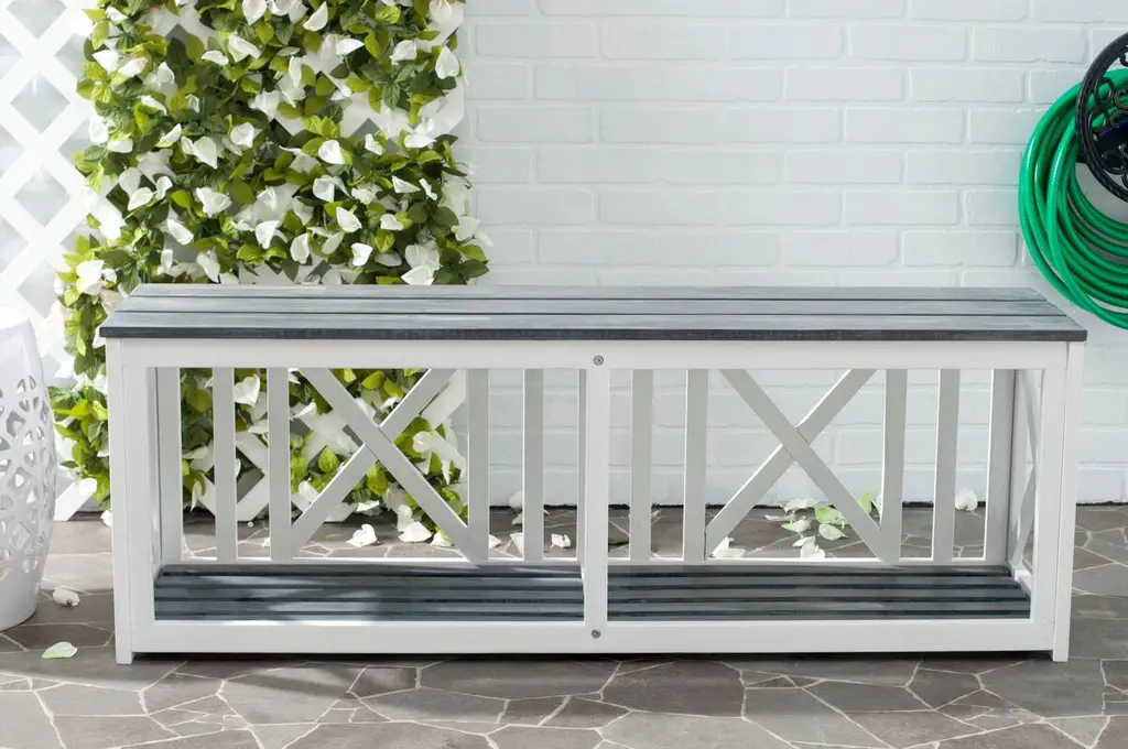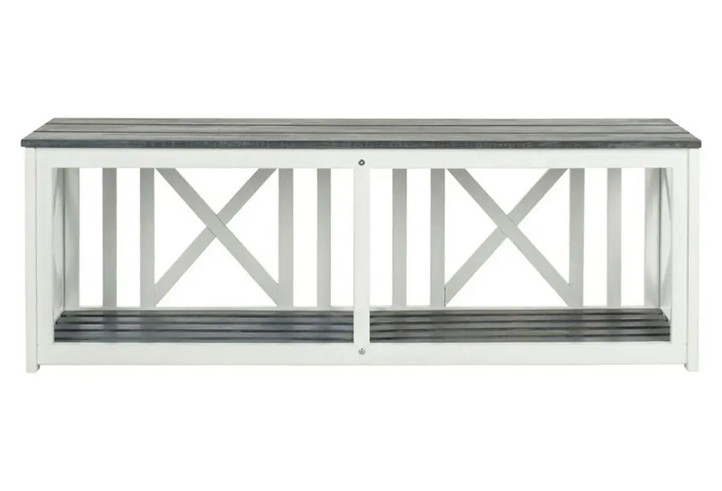 Simple and classic, this bench adds ample seating, welcome storage, and a fresh, clean look to any space, indoors or out. Crafted with durable construction, it is designed to last for seasons to come. A slatted stretcher and an open frame provide a handy storage space for accents.