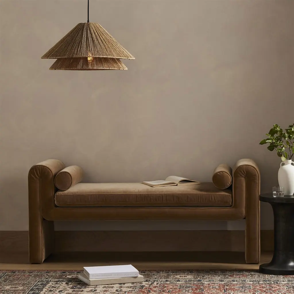 Brianne Modern Classic Camel Velvet Bedroom Bench