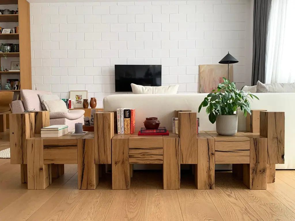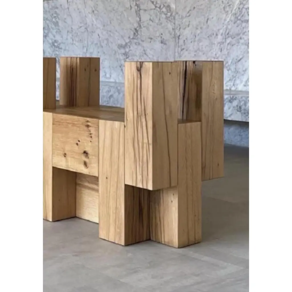 Brick Bench by Idaaf ArchitectsDimensions: D 35 x W 190 x H 55 cm.Materials: Solid oak.‘Brick’ is the first attempt by Idaaf Architects workshop to create a new building material. White the process of selecting its textures is at the initial stage and the research process is ongoing, we used it's shape to create various decorative elements for the interior.Born and based in Tbilisi, Nana Zaalishvili completed her Master’s degree in civil architecture at Tbilisi State Academy of Arts. In 2016 she founded studio Idaaf Architects. Since its foundation, the studio has worked on multidisciplinary projects of different types and scale in Georgia and elsewhere. Alongside work on architectural and interior design projects, the sculptural furniture is an important part of the work of the studio. Nana'sapproach is shaped by Tbilisi's eclectic architecture and its hectic urban scene, as well as the stunning natural beauty of the Georgian vernacular architecture.Nana is author of the book: Soviet Bus Stops in Georgia and many architectural/design essays published in various magazines. Nana leads several researches about material studies and Georgian architecture. Information about her completed and ongoing projects can be found in her website.Idaaf Architects was established in Tbilisi in 2016 and is led by the architect Nana Zaalishvili. Studio works on multidisciplinary principles combining Architecture, Interior Design and Furniture, as well as Research and Material Studies. Each project is the results from the deep cultural, geographical and site research with the aim of creating timeless yet modern architecture and design in Georgia and abroad.
