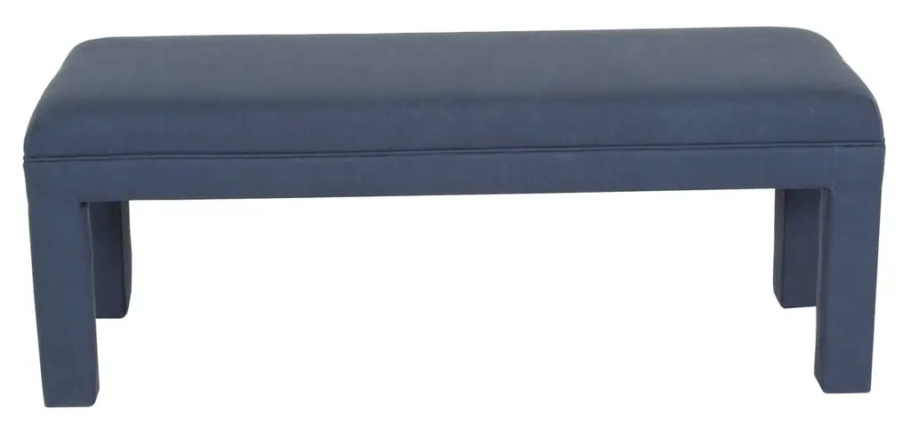 Available online exclusively at One Kings Lane: This otherwise simple and chic bench boasts bold, preppy flair thanks to its striped upholstery in navy and white. Framed in alder with an amply padded seat, it ensures years of lasting style and comfort. Handcrafted in Southern California.