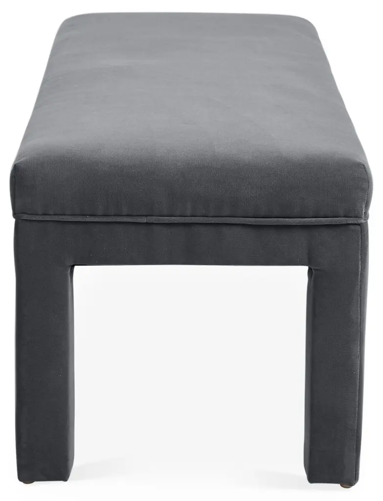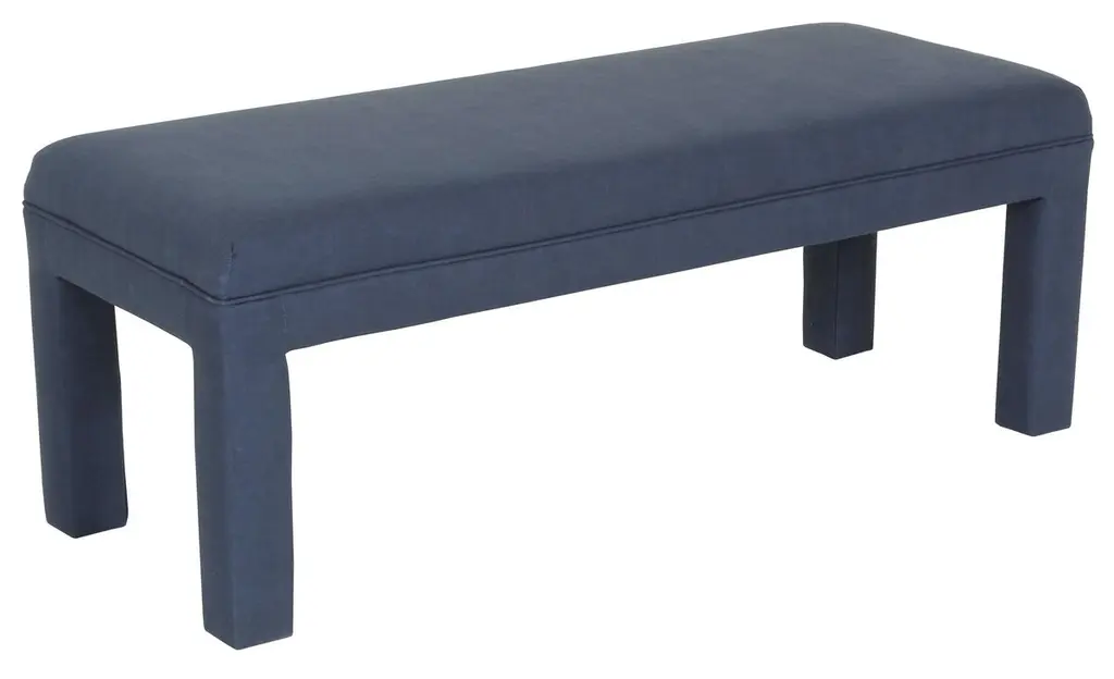 Available online exclusively at One Kings Lane: This otherwise simple and chic bench boasts bold, preppy flair thanks to its striped upholstery in navy and white. Framed in alder with an amply padded seat, it ensures years of lasting style and comfort. Handcrafted in Southern California.