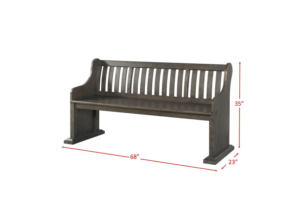 Enhance your living space with the Brown 68" Ladder Back Pew Bench With Arm, a perfect blend of casual and farmhouse styles. Crafted from high-quality acacia wood, rubber wood, and plywood, this bench features a smokey walnut finish that adds a touch of rustic charm to any room. The lath back design, wooden seat, and curved armrests provide both comfort and style, making it an ideal addition to your family room, living room, or great room.