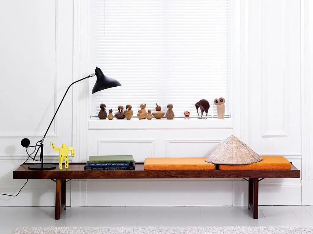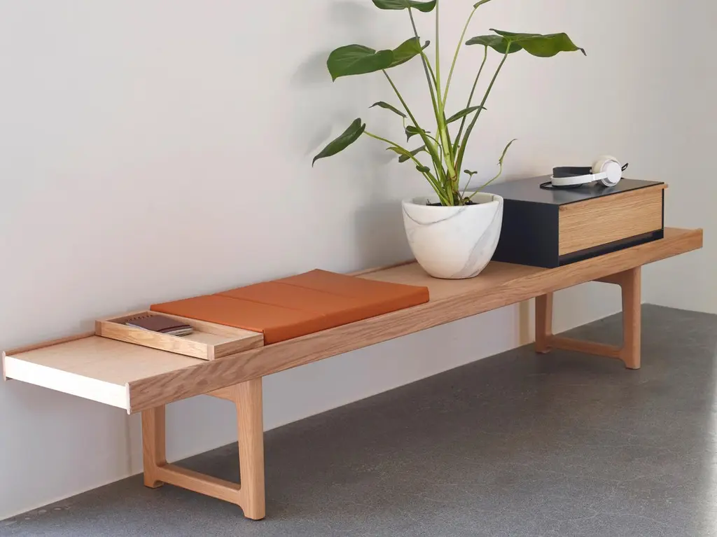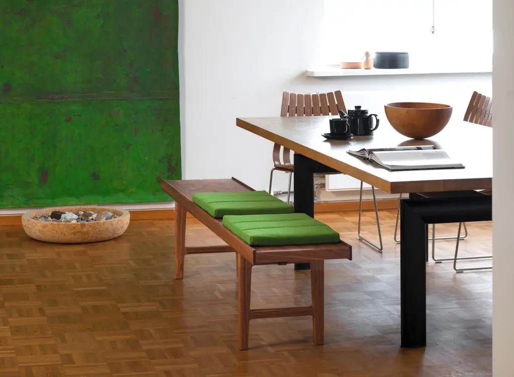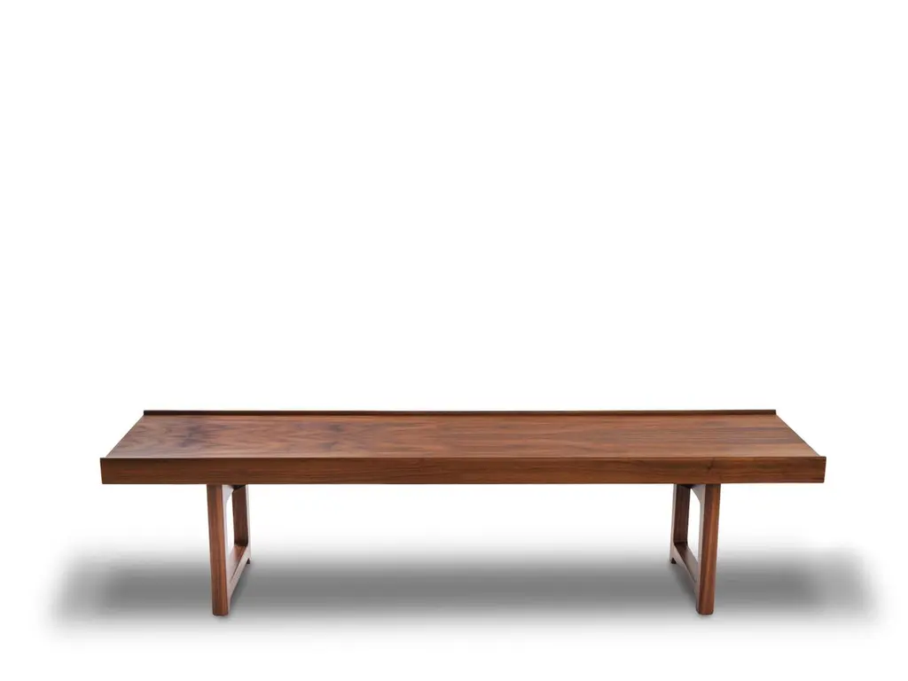 Scandinavian Bruksbo bench, new edition. Designed in 1960 by Torbjøn Afdal and originally produced by the Norwegian cabinetmaker Bruksbo, the bench is now released by Fjordfiesta.Made in Norway, the Bruksbo bench by Torbjøn Afdal is available in 3 lengths (120 cm, 150 cm or 200 cm), 3 finishes (oak, walnut, black lacquer) and 2 heights (34 cm or 44 cm)The Bruksbo bench can be used as an entrance bench, coffee table, or table bench in its 44 cm high version.