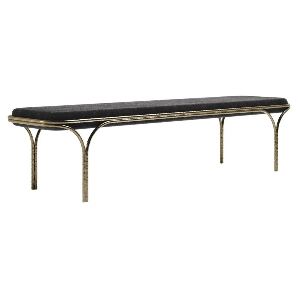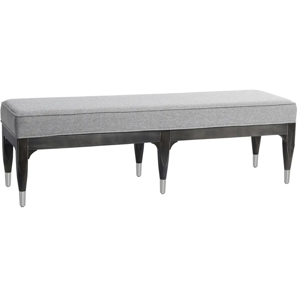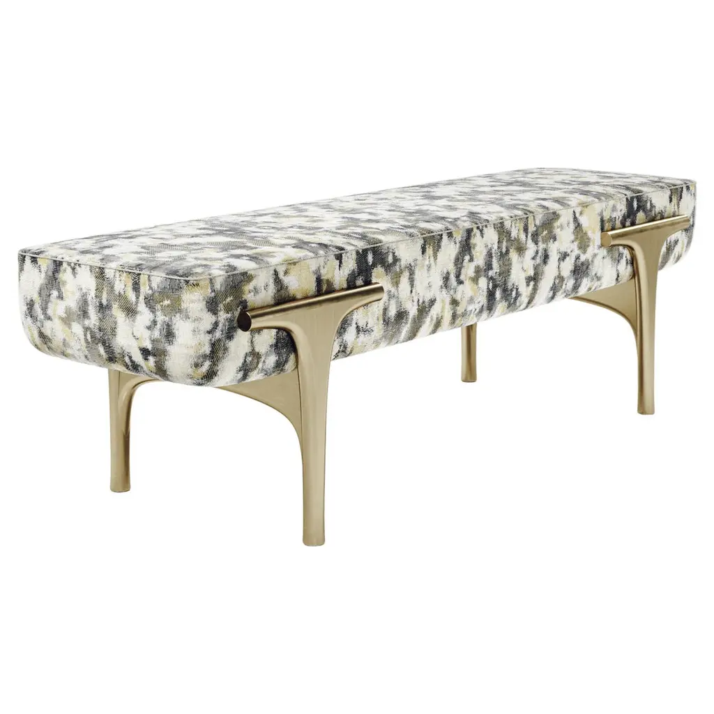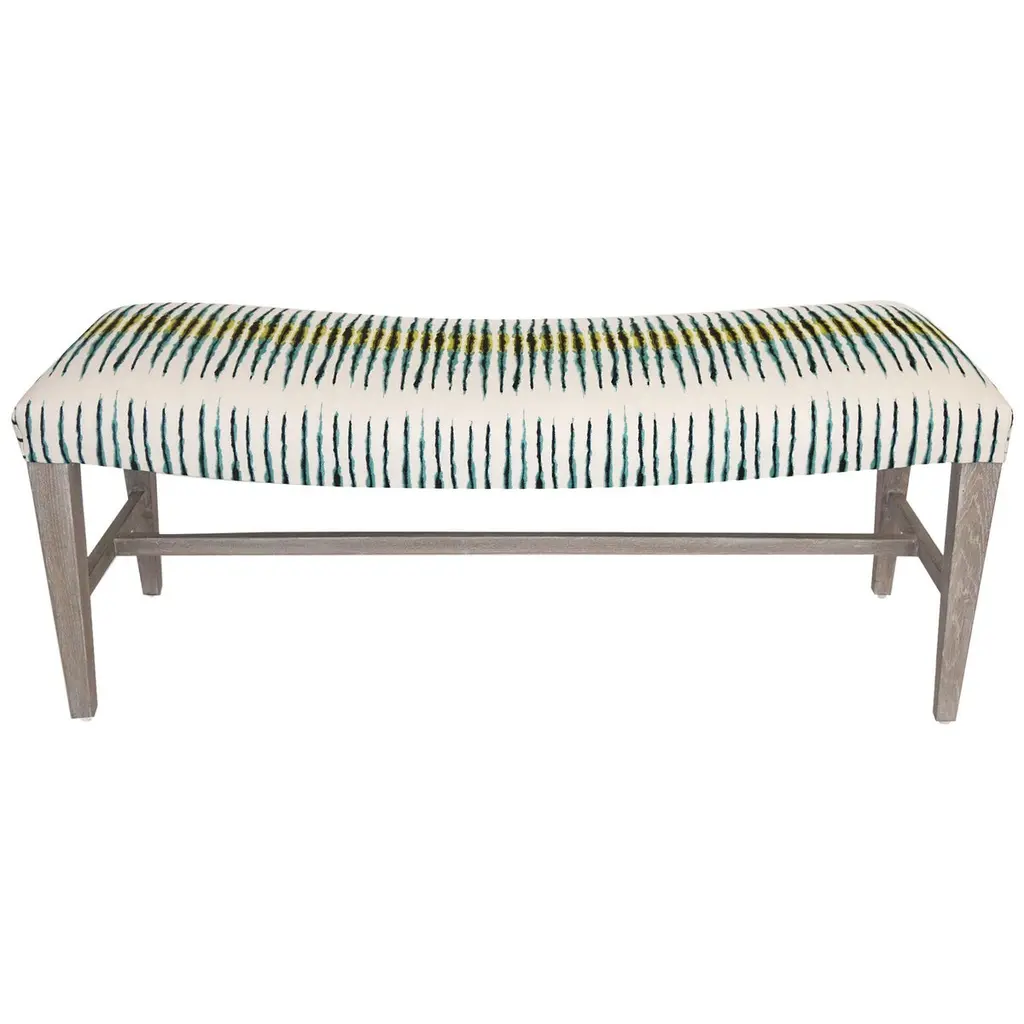 Brunshwig & Fils custom fabric, blue and white Chevron with lucite legs. There are two identical available.