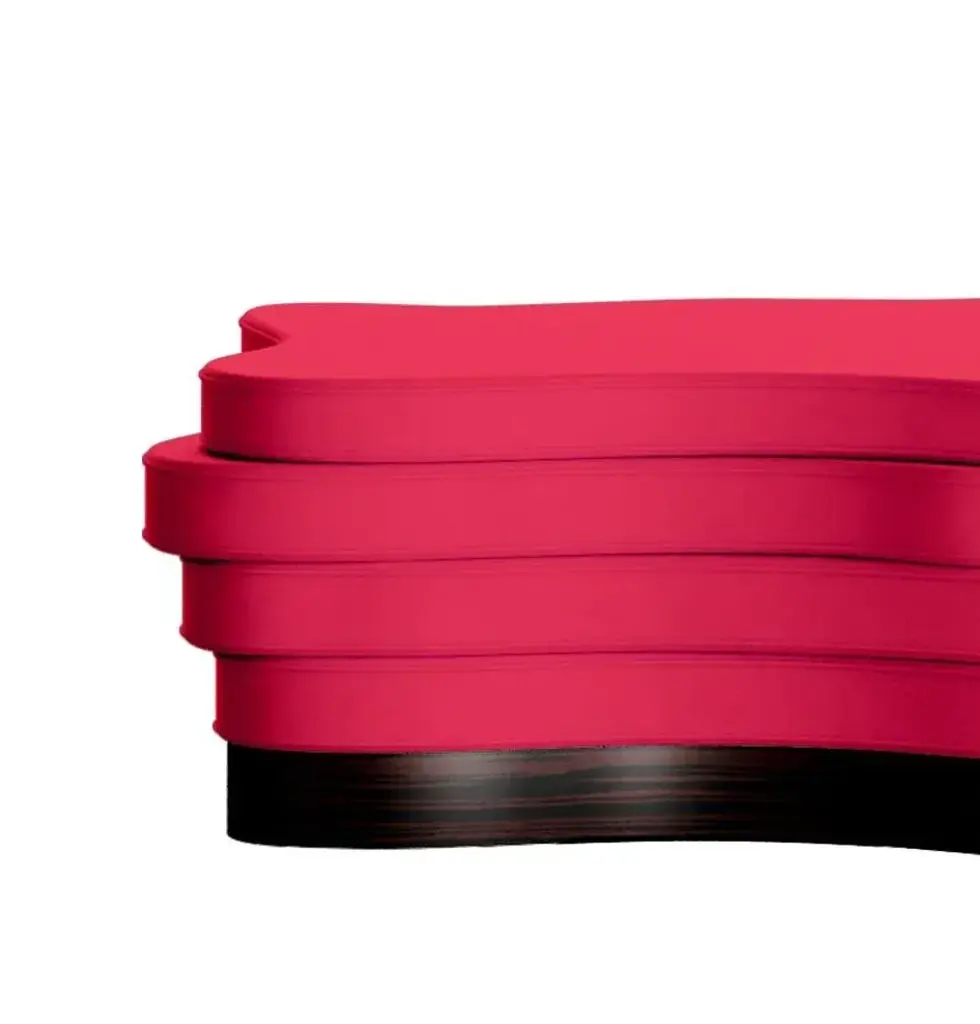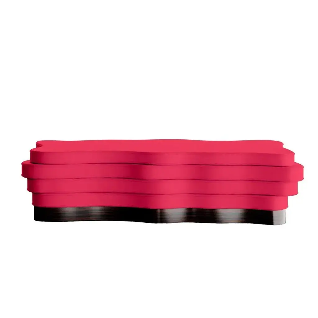Cadiz Bench combines bold shapes with extreme attention to comfort. A modern bench with a Memphis-style inspiration is ideal for any contemporary seating area or a luxury entryway. Upholstered in the vibrant Viva Magenta fabric, Pantone Color of the Year 2023, the Fifih Bench Magenta is pure joy for your interiors, encouraging self-expression without restraint. Please contact us for further details and customization options. MATERIALS: Upholstered in Velvet; Base in Ebony Veneer.
