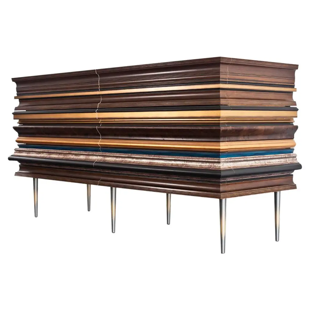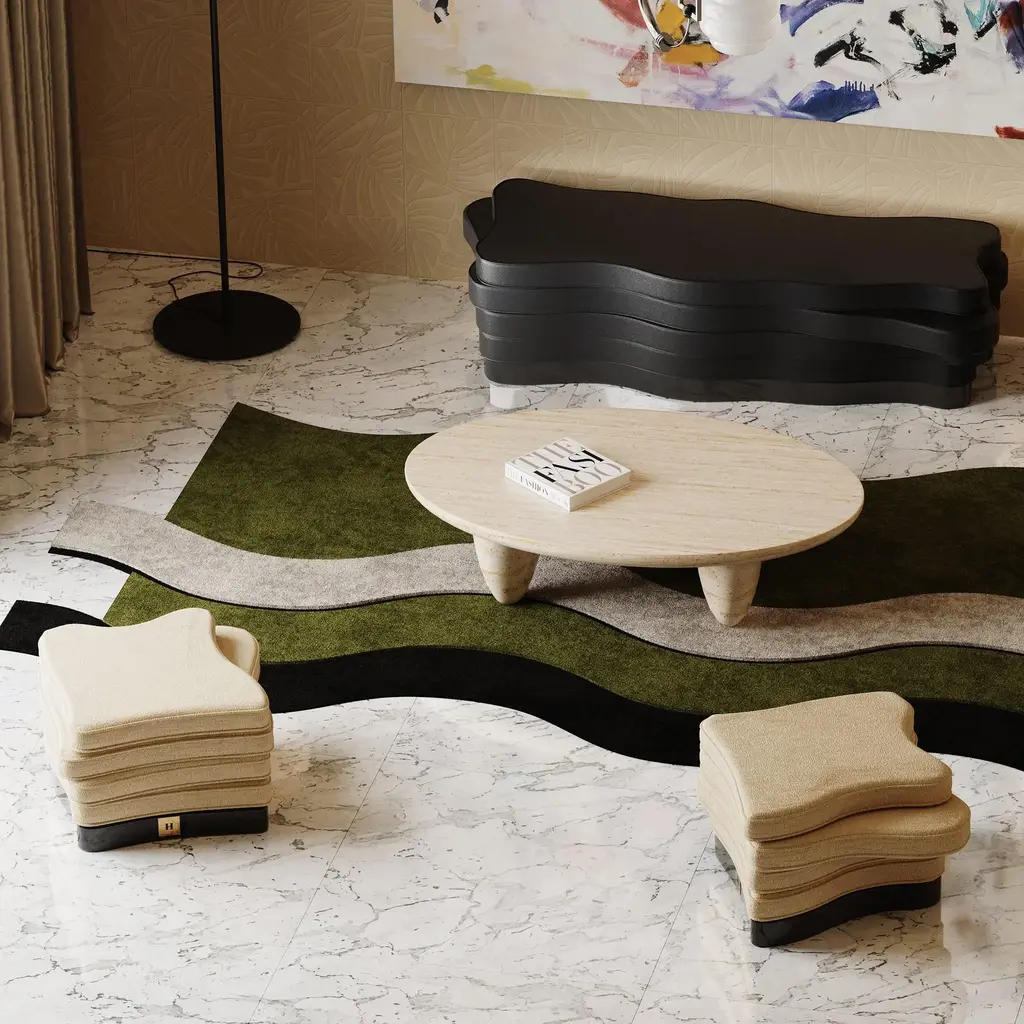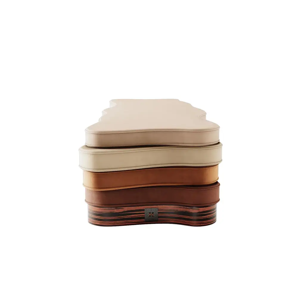 Cadiz Bench combines bold shapes with extreme attention to comfort. A modern bench with a Memphis-style inspiration is ideal for any contemporary seating area or a luxury entryway. MATERIALS: Upholstered in Velvet; Base in Ebony Veneer.