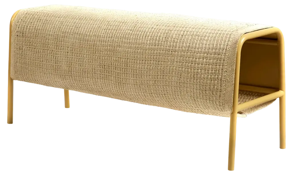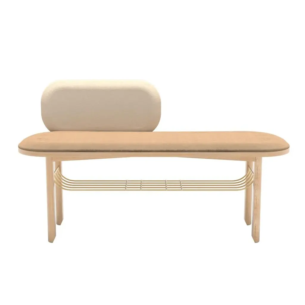 Camel eustache bench natural oak by harto dimensions: w 120 x d 40 x h 74 cm. Materials: solid wood, wood veneered mdf, velvet, metal, foam. Weight: 24.5 kg