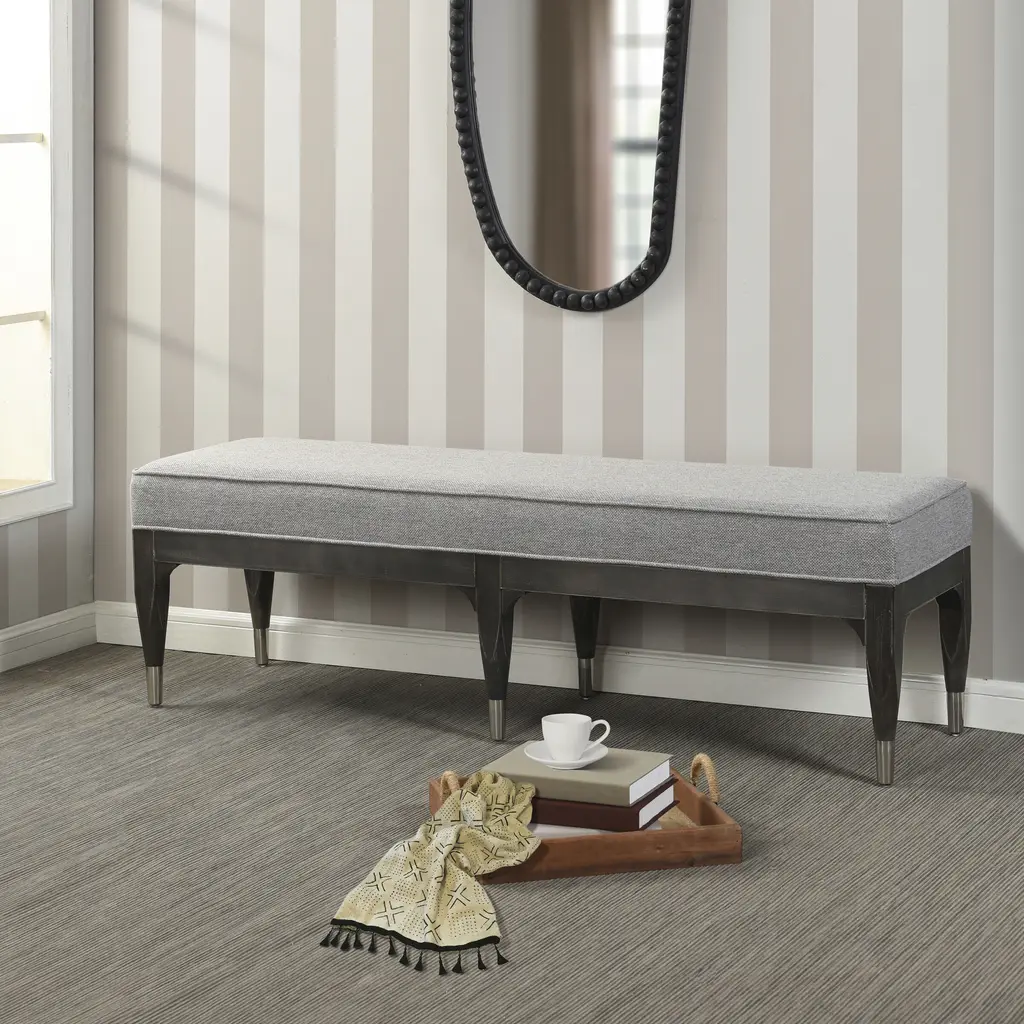 Bring warmth and comforts to your living space with this versatile chair bench. The bench is crafted from sturdy pine wood for long-lasting use and topped off with a cushion stuffed with comfy foam and upholstered in soft linen. This piece adds a friendly, cozy touch to any theme. Use it as an additional seating space in the living room, or place it at the end of your bed to add a touch of elegance to your bedroom or use it in the office lobby for visitors to sit while they wait. Its multifunctionality makes it an excellent addition to any home.