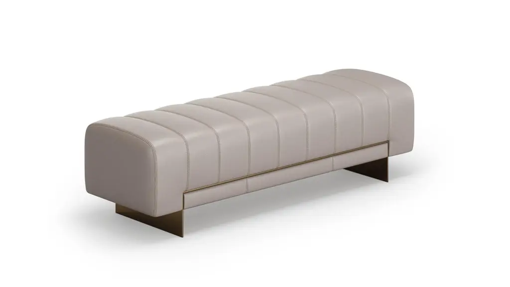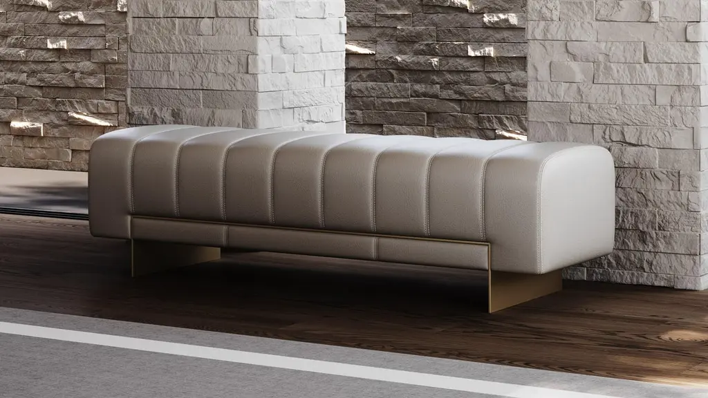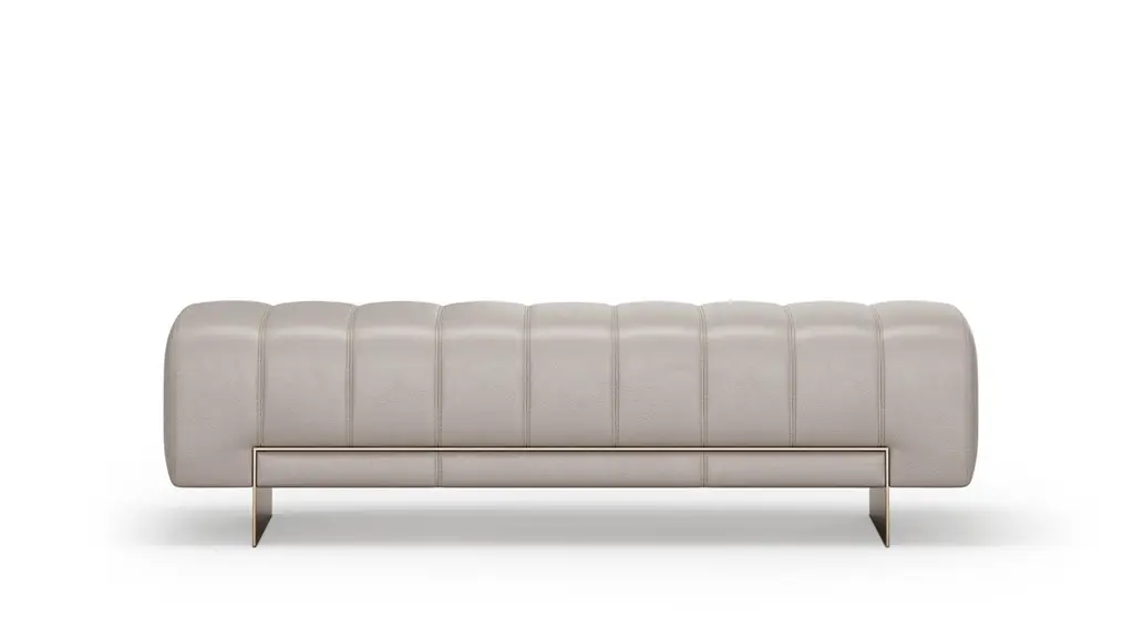 Camila bench with its refined metal frame and cozy upholstery, is a sanctuary of comfort and style. Its thoughtful design beckons you to sit, unwind, and enjoy a brief respite.