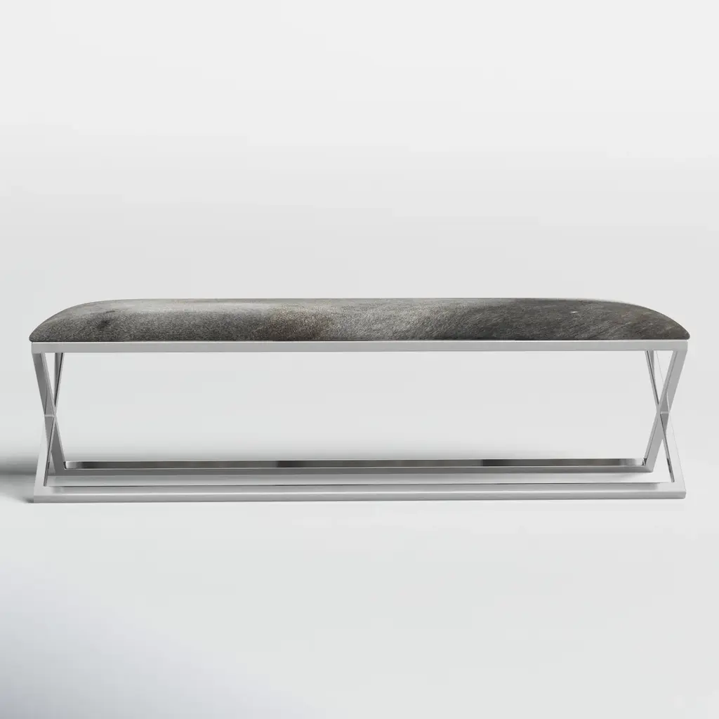 This exquisite hairline leather seat is in a chrome finish. The frame is made out of stainless steel. It comes with cow hide fur, and the hides will naturally vary in color and tone.