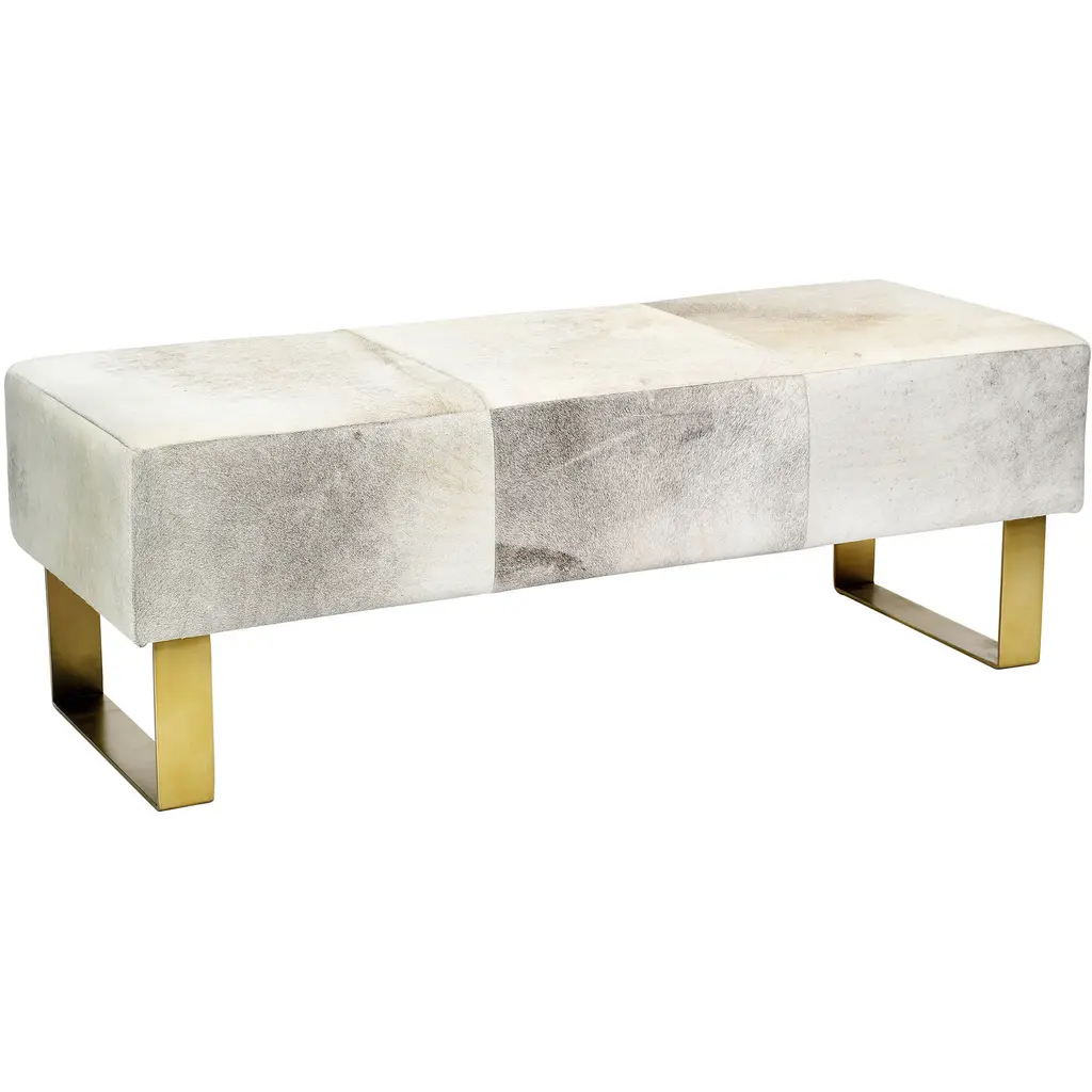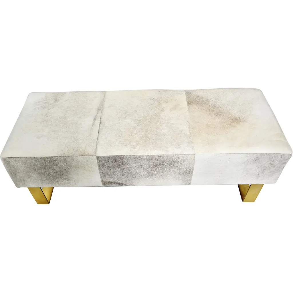 This exquisite hairline leather seat is in a gold finish. The frame is made out of stainless steel. It comes with cow hide fur, and the hides will naturally vary in color and tone.