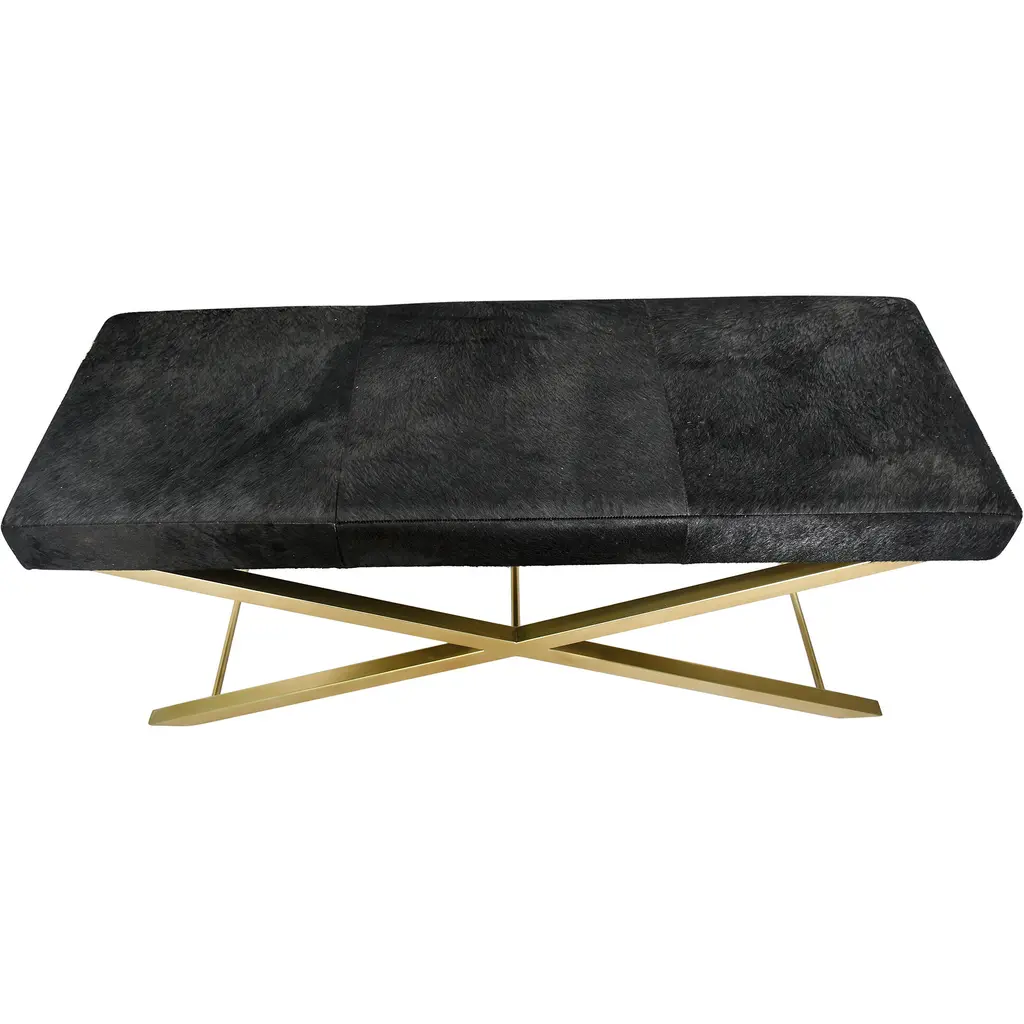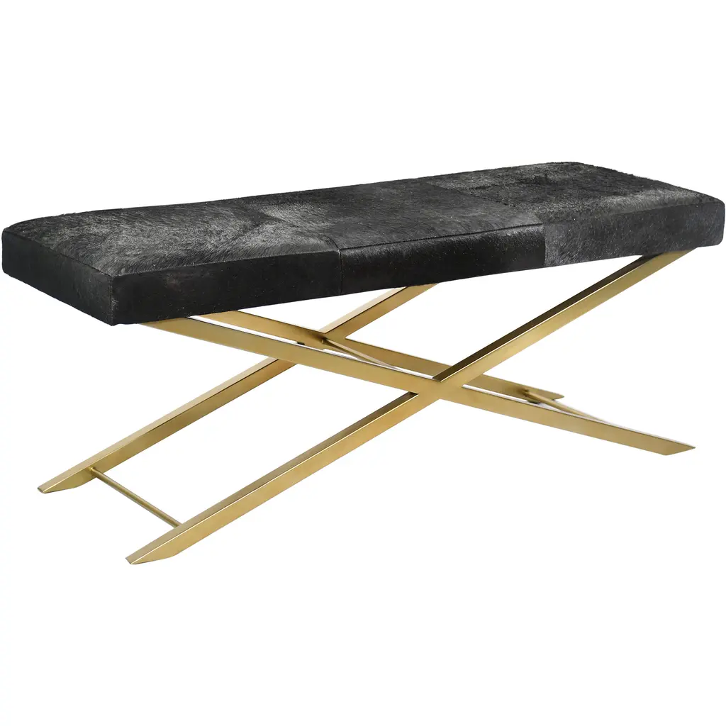 This exquisite hairline leather seat is in a gold finish. The frame is made out of stainless steel. It comes with cow hide fur, and the hides will naturally vary in color and tone.