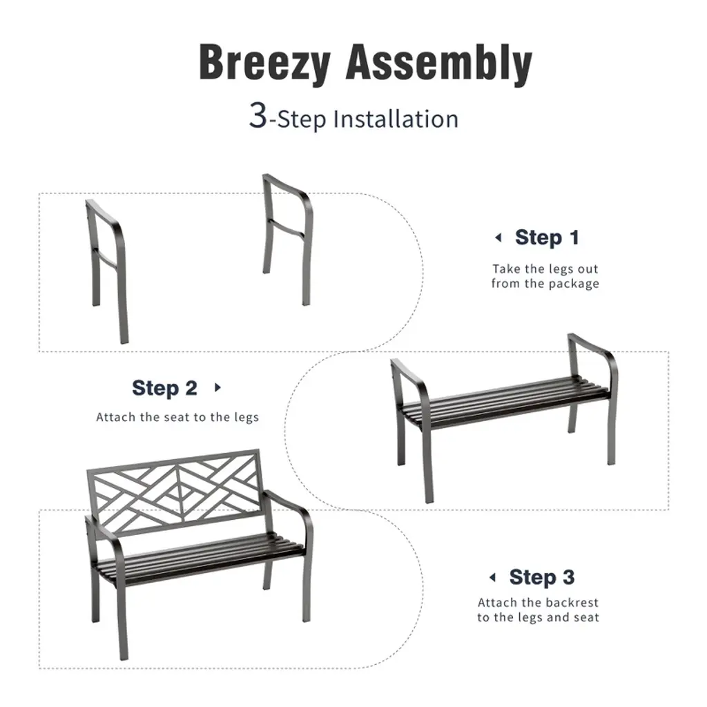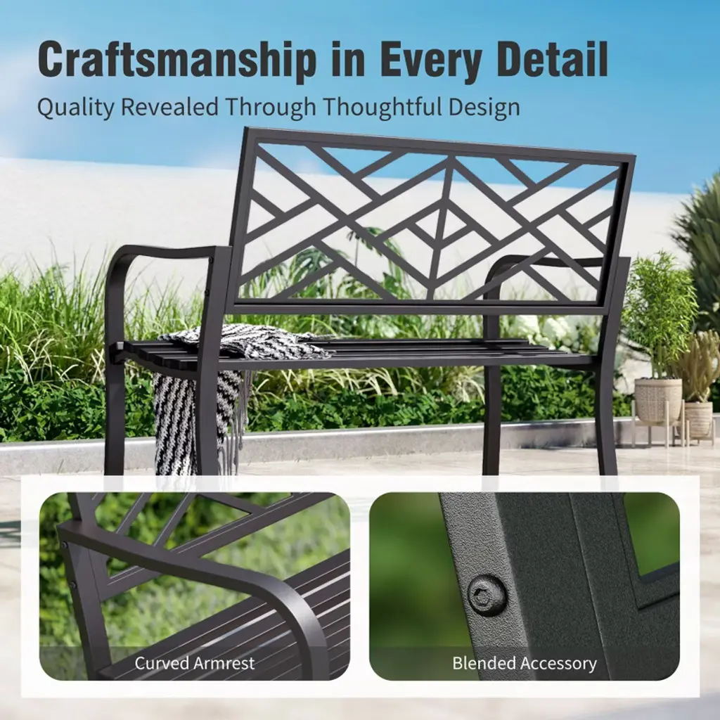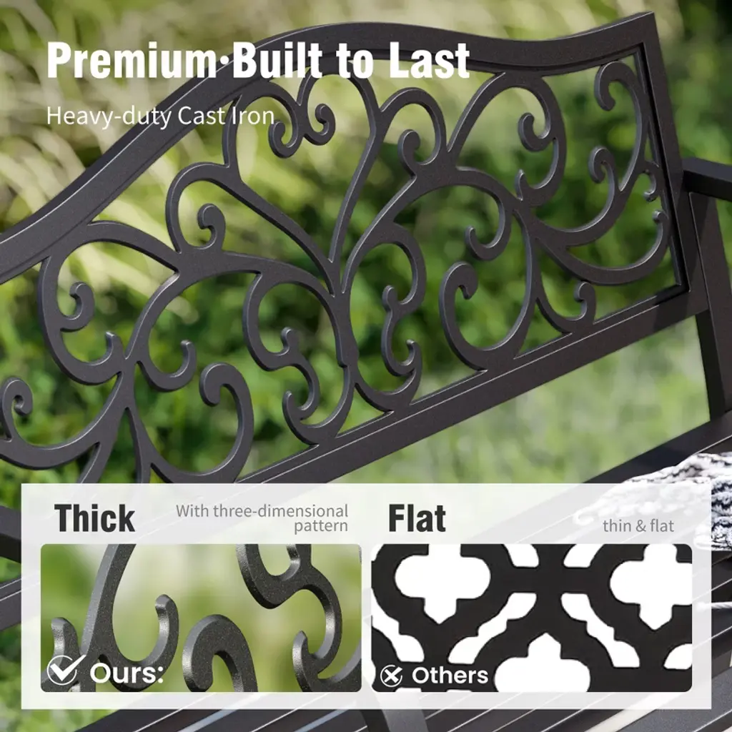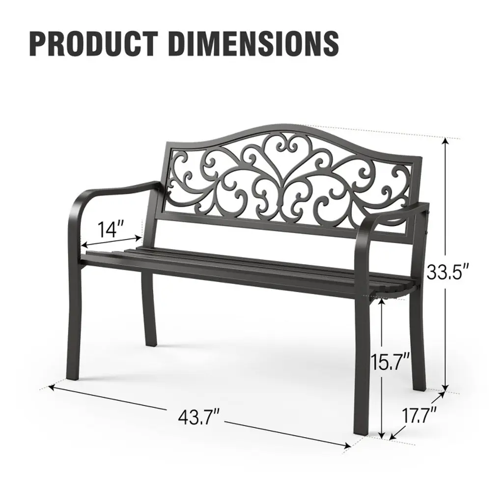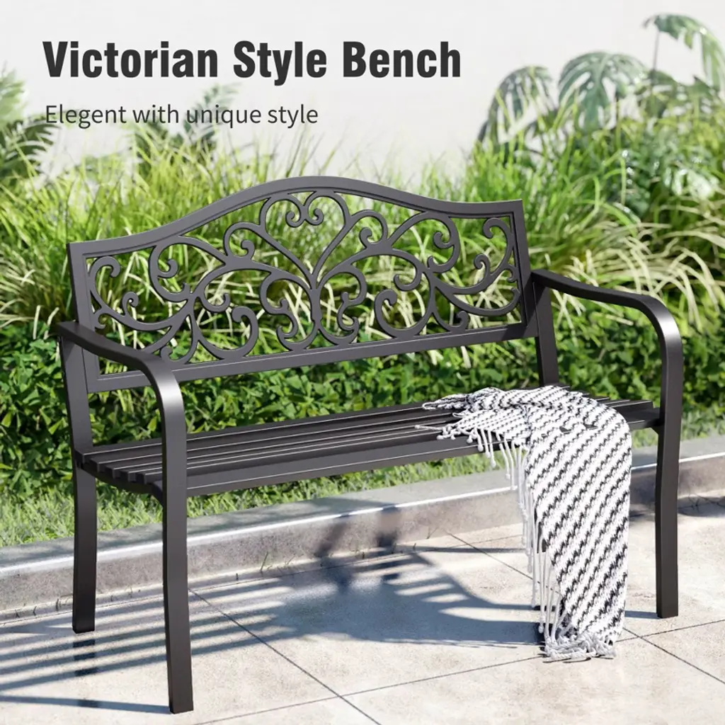 [CAPTIVA DESIGNS]The Captiva Designs Outdoor Garden Bench combines elegance and durability, making it a perfect addition to any outdoor space. Constructed from robust cast iron or high-quality steel with a rust-resistant powder coating, these benches are designed for long-lasting use. With comfortable seating for 2 to 3 people, the benches feature slightly curved seats and armrests that enhance relaxation. Stylish floral or intricate patterns on the backrest add a touch of class, while the slatted design ensures easy cleaning and stability. Ideal for gardens, patios, or poolside settings, these benches create an inviting atmosphere for enjoying coffee, reading, or social gatherings.. Packages Includes: Bench x 1 Assembly Time: 10 - 30 Min
