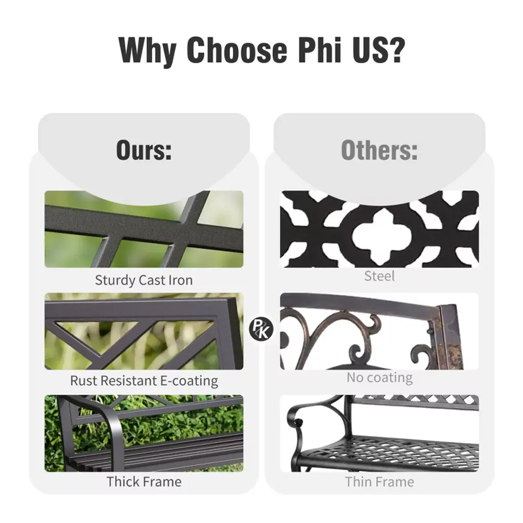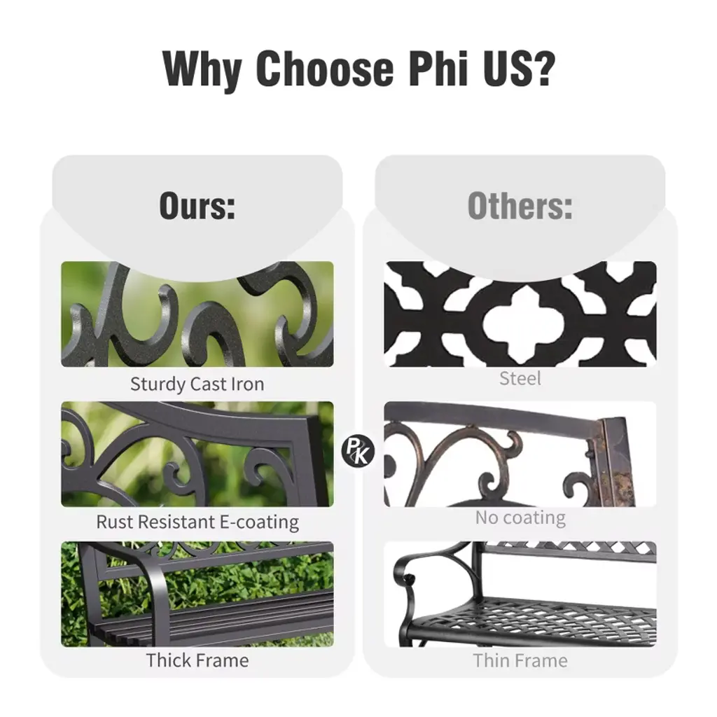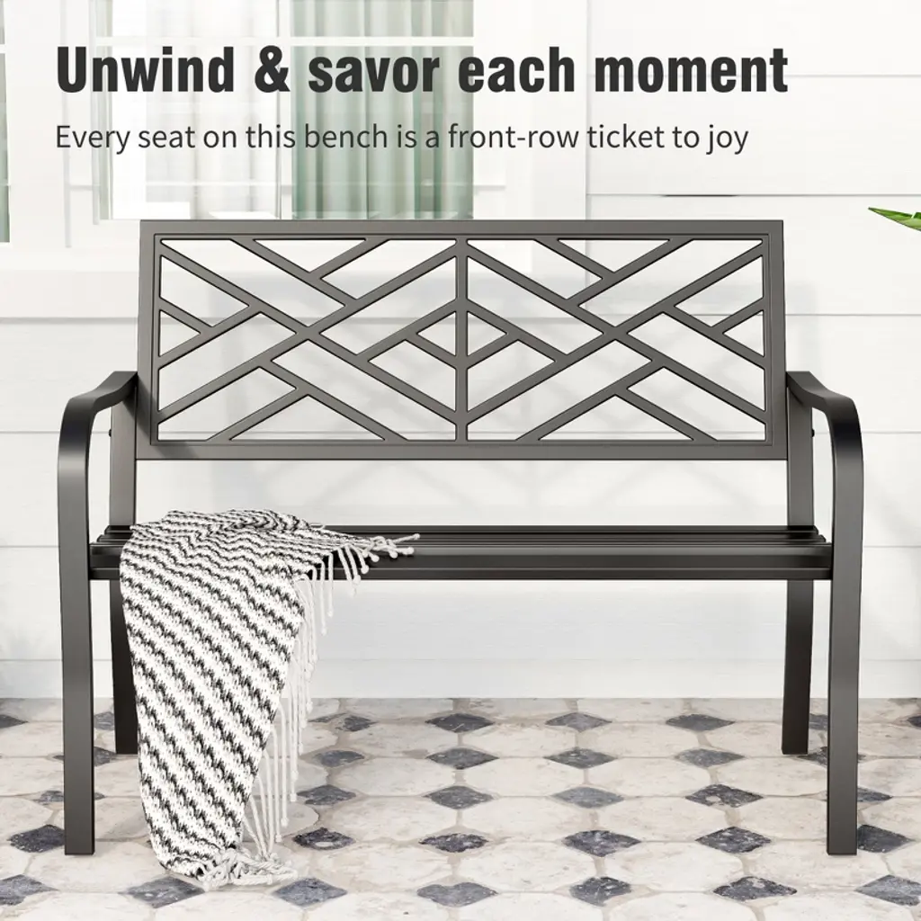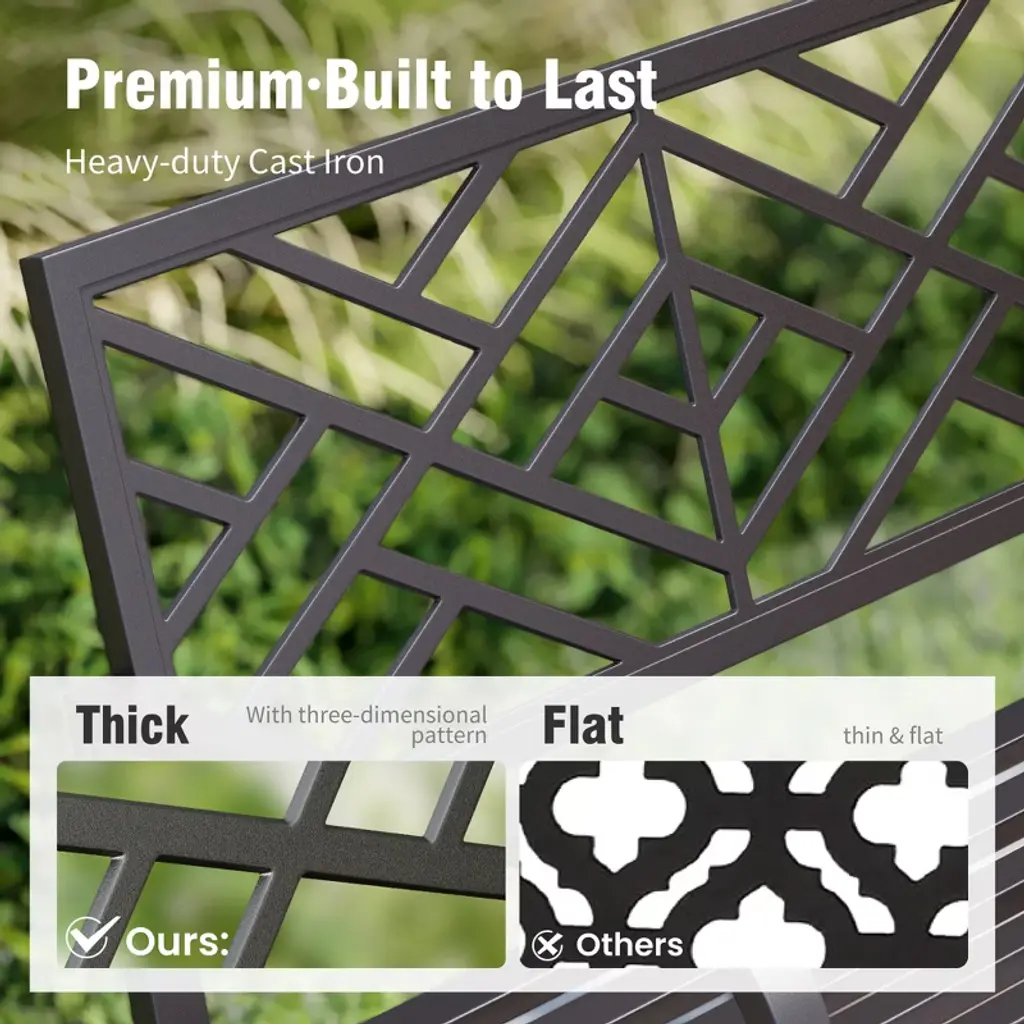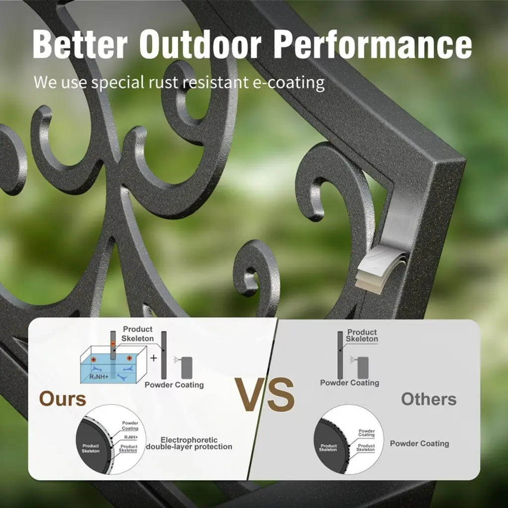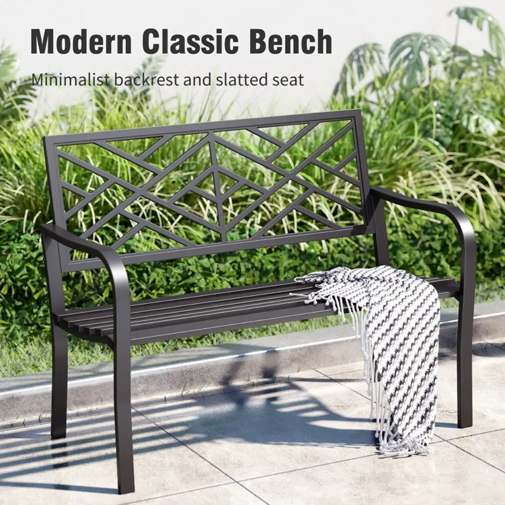 [CAPTIVA DESIGNS]The Captiva Designs Outdoor Garden Bench combines elegance and durability, making it a perfect addition to any outdoor space. Constructed from robust cast iron or high-quality steel with a rust-resistant powder coating, these benches are designed for long-lasting use. With comfortable seating for 2 to 3 people, the benches feature slightly curved seats and armrests that enhance relaxation. Stylish floral or intricate patterns on the backrest add a touch of class, while the slatted design ensures easy cleaning and stability. Ideal for gardens, patios, or poolside settings, these benches create an inviting atmosphere for enjoying coffee, reading, or social gatherings.. Packages Includes: Bench x 1 Assembly Time: 10 - 30 Min