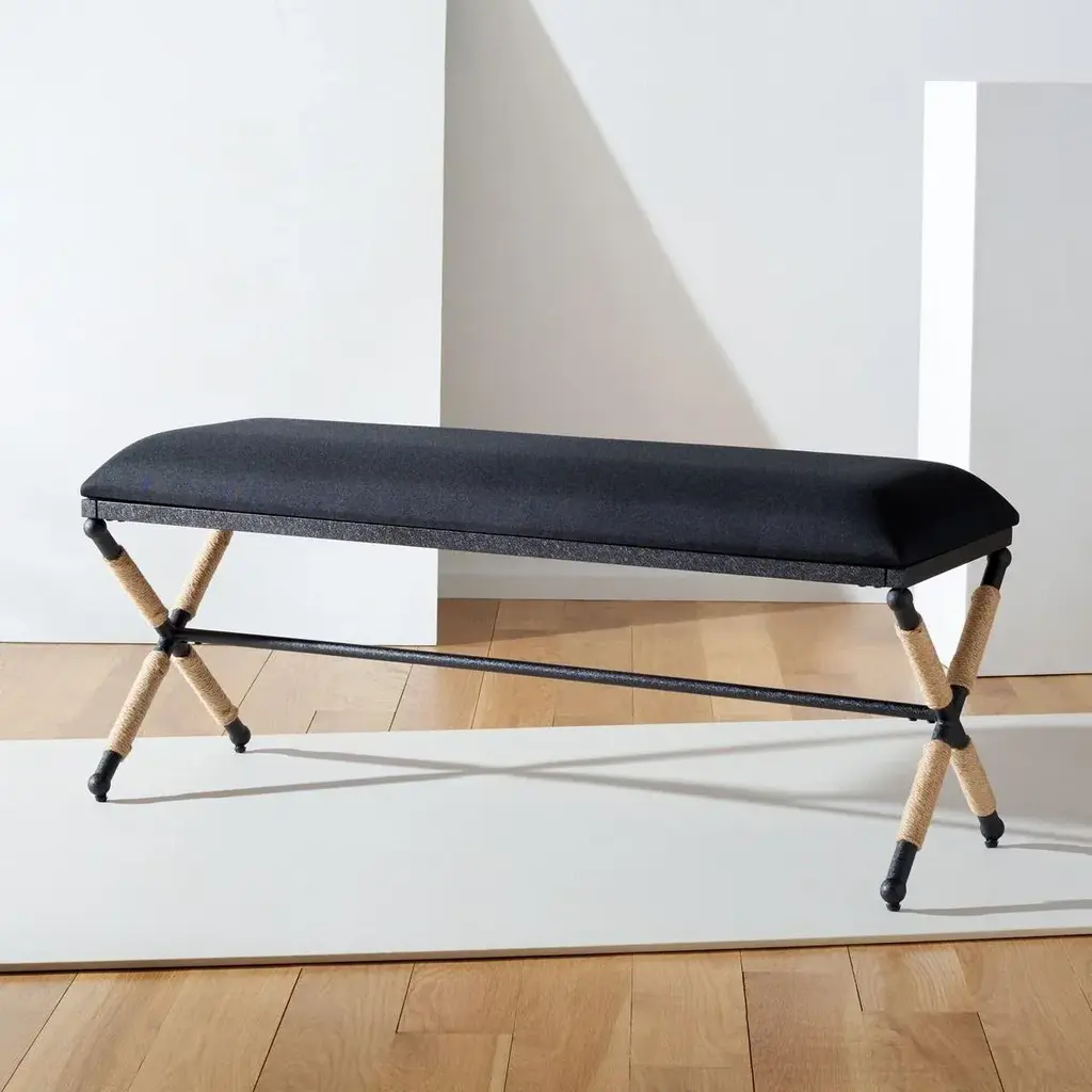 Classic design goes coastal-chic in this contemporary Carmelo Bench. Carmelo’s timeless crossed black wood base is given a modern makeover with natural hemp wrap details, while its plush black cushion makes it delightfully comfortable. METAL CARE: Wipe spills immediately. Maintain with regular dusting. Clean with mild soap and water. Dry thoroughly and do not use a brass cleaner. ACRYLIC CARE: Blot up spills immediately. Use coasters on table tops under beverages. Use trivots or mats under hot dishes or cookware. Clean with warm water and dry surface immediately after cleaning. Do not use cleaners that contain acid such as bathroom cleaners, grout cleaners, and tile cleaners. Do not use abrasive cleaners in either dry or liquid forms. Use a cleaner and polish formulated for acrylic surfaces. Weight Capacity (lbs): 500 Seat Dimensions (W x D x H in): 47.8 x 16 x 20.3 Assembly Required? Yes Materials: Plywood, Linen (100% Polyester), Foam, Iron