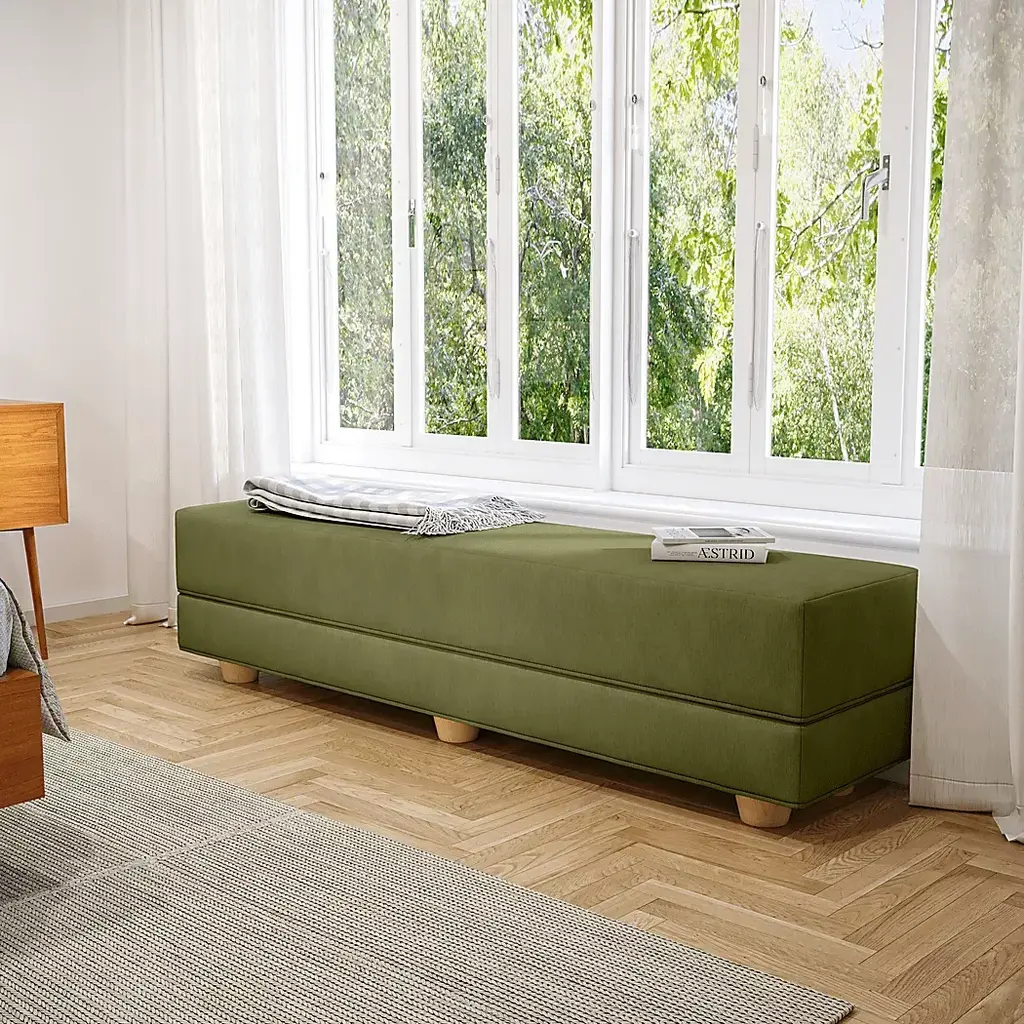 A practical solution for any space, the Casila Modular Bed Bench lets you enjoy effortless transformations that can take you from sitting to sleeping in an instant. Regardless of where you decide is the perfect place for this bench, you will thoroughly enjoy its space saving capabilities. Constructed from a pair of foam platforms, the Casila acts as a slender end of bed bench that also doubles as a twin sleeper when the platforms are placed side-by-side. The design is elevated with lathe-turned solid maple feet that can be secured in a matter of seconds with its easy-to-unfold wooden base. We paired the bed bench with a fashionable, high-performance micro-velvet fabric with textured striations. Underneath our washable covers are layers of body conforming high-density polyurethane foam covered with lighter foam padding. Feature the bench in front of your king or queen bed to complete any look. Its lightweight and easy to move into the living room for extra seating. Customer assembly is required.
