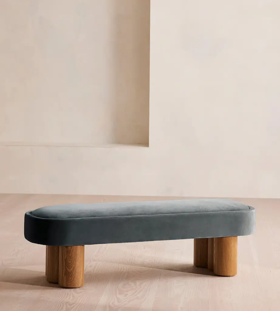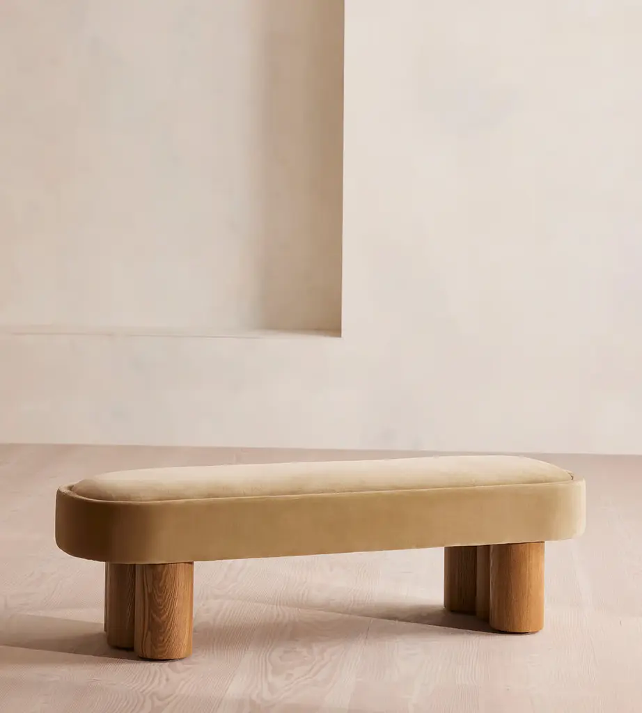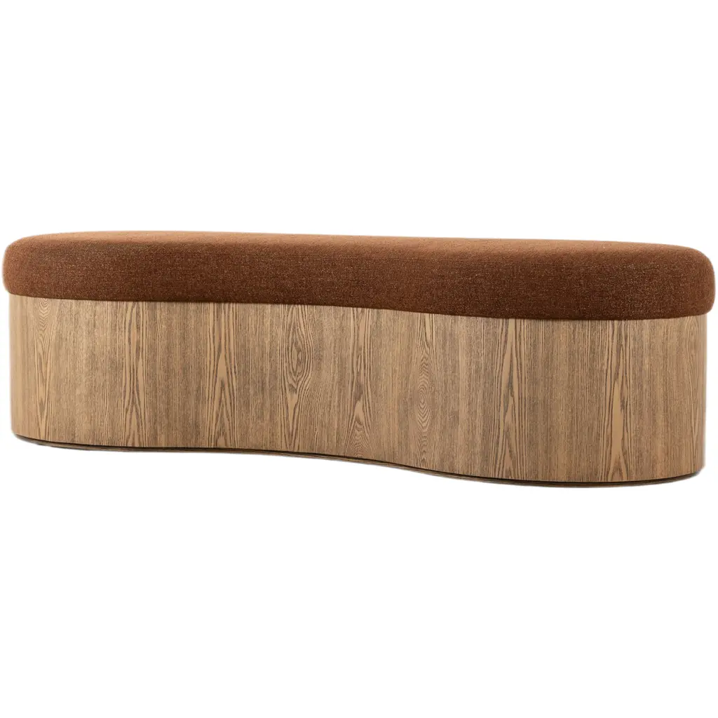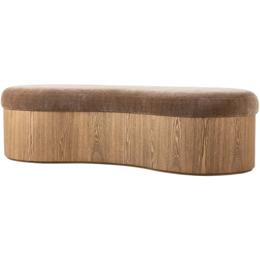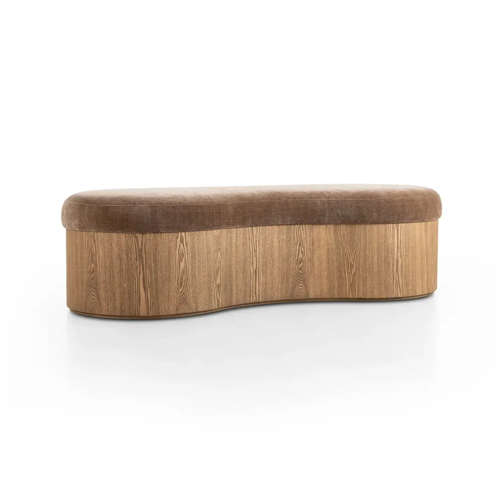 Introduce a touch of luxury to any space with the Celeste Accent Bench from Four Hands. Its unique, curvy design features a toasted ash veneer base and a velvety soft seat, creating a sophisticated and exclusive piece. Perfect for a living room or lounge, this bench adds a chic finishing touch to a library or welcoming entryway. Highlights