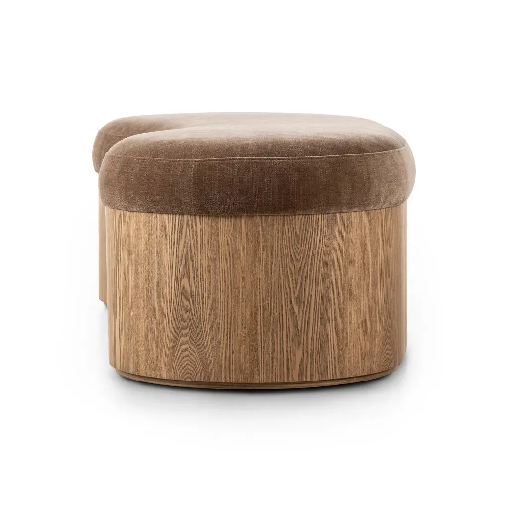 Introduce a touch of luxury to any space with the Celeste Accent Bench from Four Hands. Its unique, curvy design features a toasted ash veneer base and a velvety soft seat, creating a sophisticated and exclusive piece. Perfect for a living room or lounge, this bench adds a chic finishing touch to a library or welcoming entryway. Highlights