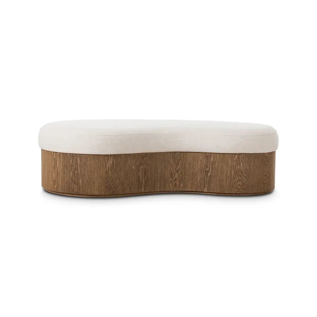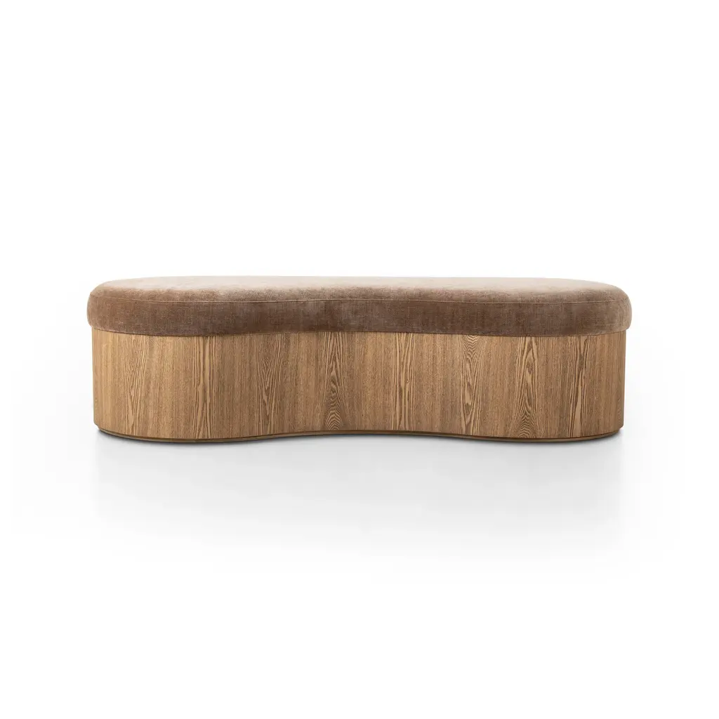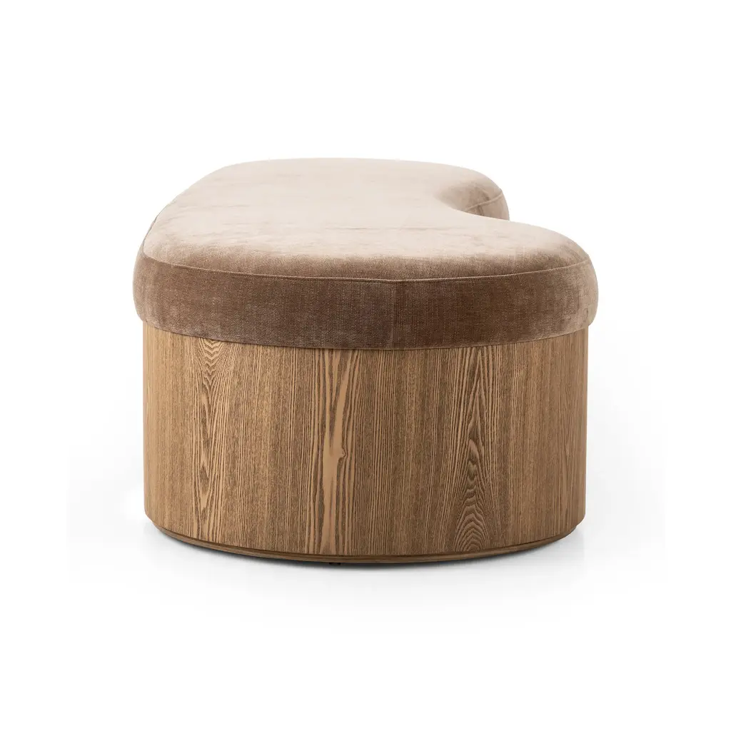 Introduce a touch of luxury to any space with the Celeste Accent Bench from Four Hands. Its unique, curvy design features a toasted ash veneer base and a velvety soft seat, creating a sophisticated and exclusive piece. Perfect for a living room or lounge, this bench adds a chic finishing touch to a library or welcoming entryway. Highlights