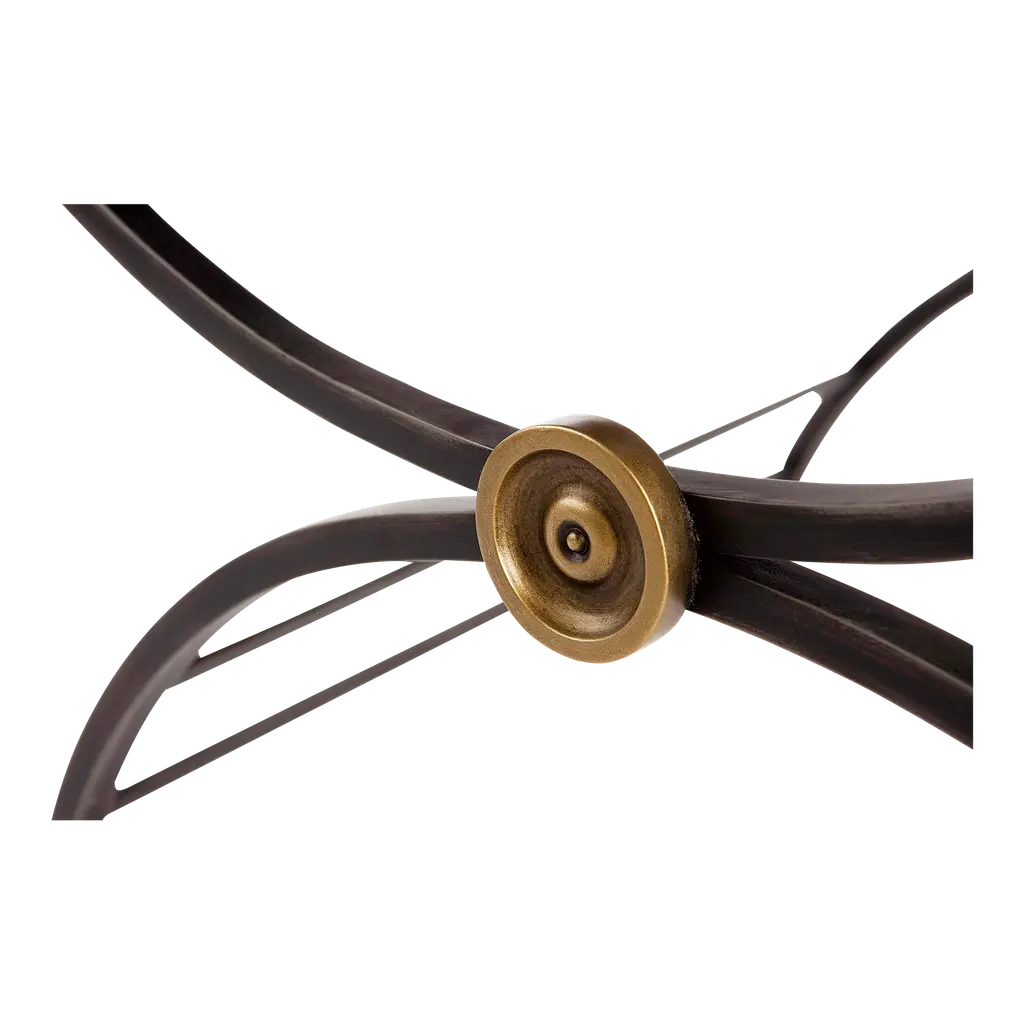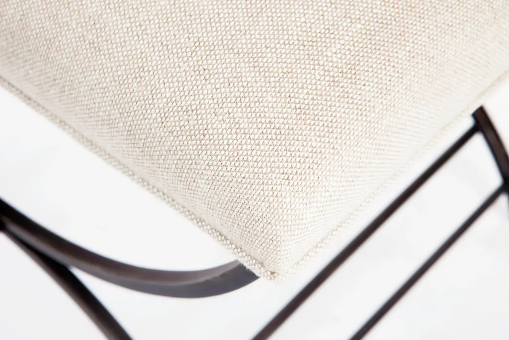 This piece is available only as shown, and will ship in 2-3 weeks. The Niles Bench can be paired at the foot of a bed, in front of a sofa or warm fireplace. It also can work as an ottoman in front of your favorite chair. The base is constructed of a x-based square tubed metal frame that is centered with a brass rosette. The top is upholstered in natural textured linen. Welcome to Monarch Fine Furniture for Century. This amazing collection of English reproductions features a variety of old world techniques including fine marquetry, églomisé, and gesso. These eclectic designs are the perfect accent to any room.