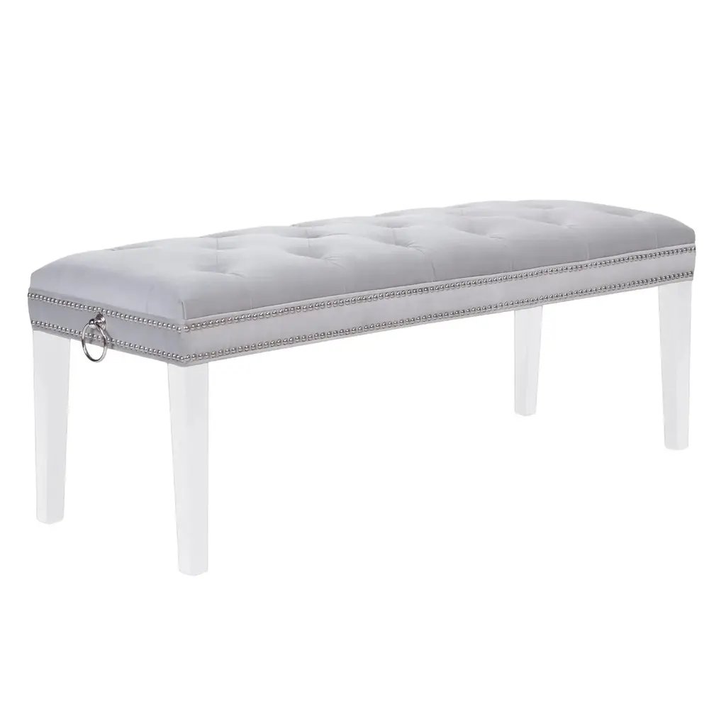 With its gentle curving silhouette, our sophisticated Charlotte Bench effortlessly elevates the style of any room. Plush upholstery and hand-applied nail head details atop wooden legs make our Charlotte Bench both refined and versatile. Shown in Bella Velvet Dove with bright nickel nailheads.Z Gallerie exclusive.Customize it! Available in 5 fabrics, 5 leg finishes, 4 nailhead and ring finishes, as well as the option to have no nailheads and/or no ring pull.The Charlotte Bench with Acrylic Legs is not available with nailheads.Custom Orders: Custom Furniture is manufactured especially for you, which is why we do not accept cancellations, exchanges, or returns.