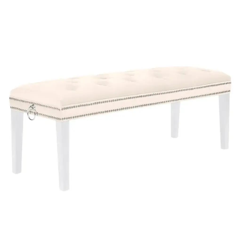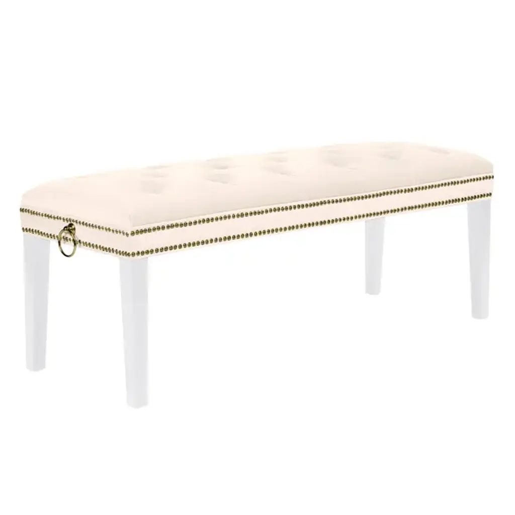 With its gentle curving silhouette, our sophisticated Charlotte Bench effortlessly elevates the style of any room. Plush upholstery and hand-applied nail head details atop wooden legs make our Charlotte Bench both refined and versatile. Shown in Bella Velvet Dove with bright nickel nailheads.Z Gallerie exclusive.Customize it! Available in 5 fabrics, 5 leg finishes, 4 nailhead and ring finishes, as well as the option to have no nailheads and/or no ring pull.The Charlotte Bench with Acrylic Legs is not available with nailheads.Custom Orders: Custom Furniture is manufactured especially for you, which is why we do not accept cancellations, exchanges, or returns.