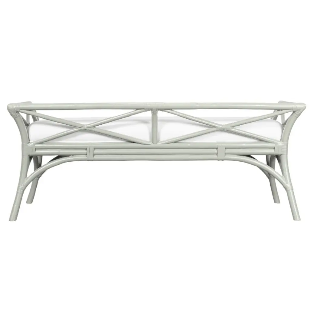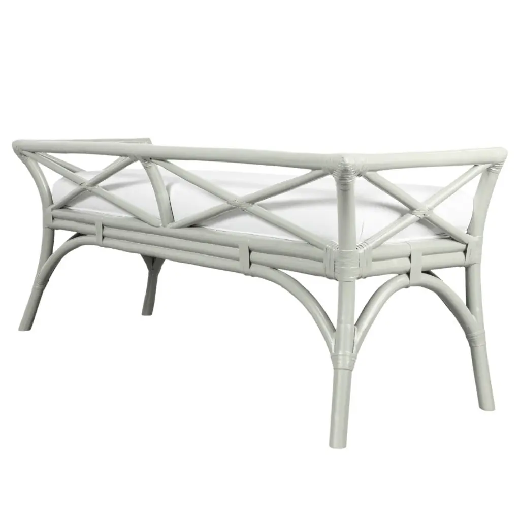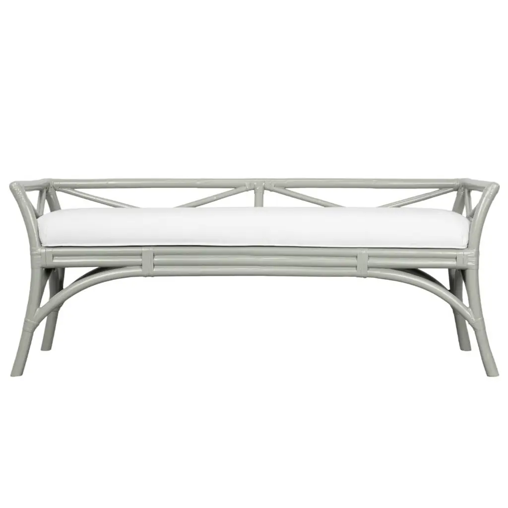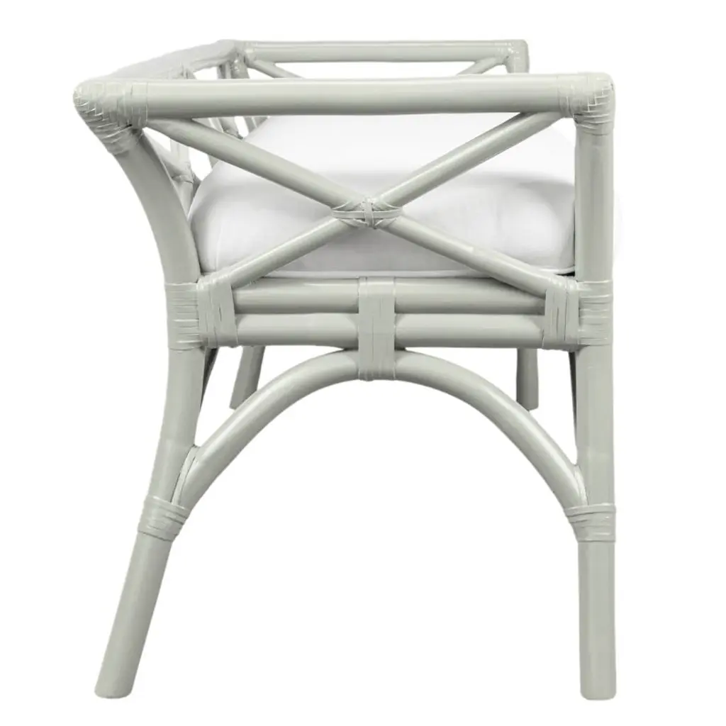 The clean lines of the Charlotte Bench are sure to add elegance to any home. The Charlotte bench is constructed with a Rattan frame and hand-wrapped with leather bindings at all joints. This bench features a tight upholstered seat and is covered in an inside-out performance fabric. The fabric is fade-resistant, bleach-cleanable, soap and water-cleanable, stain-resistant, liquid-resistant, and quick-drying. The furniture frame and cushions are finished and sewn to order at our Florida factory.