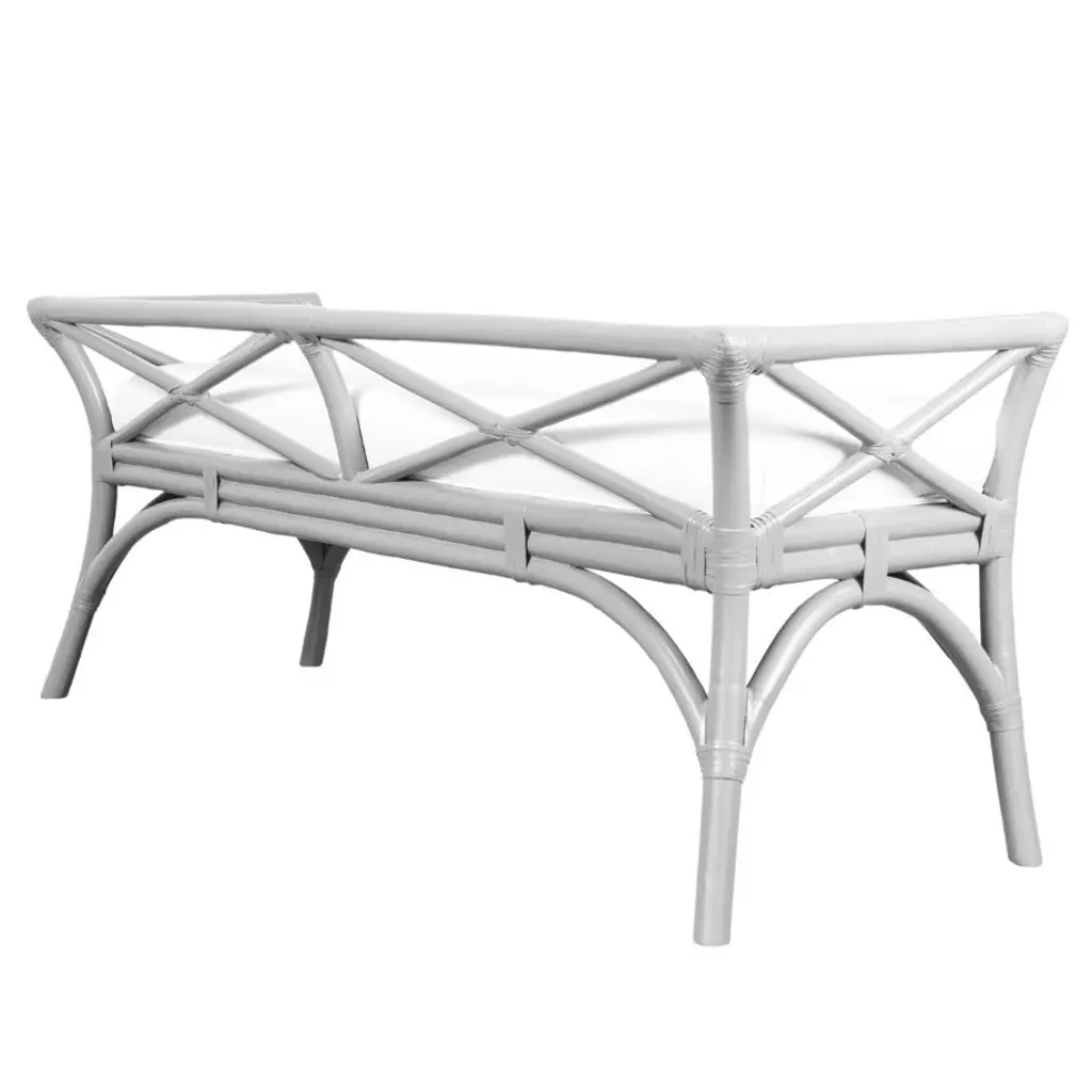 The clean lines of the Charlotte Bench are sure to add elegance to any home. The Charlotte bench is constructed with a Rattan frame and hand-wrapped with leather bindings at all joints. This bench features a tight upholstered seat and is covered in an inside-out performance fabric. The fabric is fade-resistant, bleach-cleanable, soap and water-cleanable, stain-resistant, liquid-resistant, and quick-drying. The furniture frame and cushions are finished and sewn to order at our Florida factory.