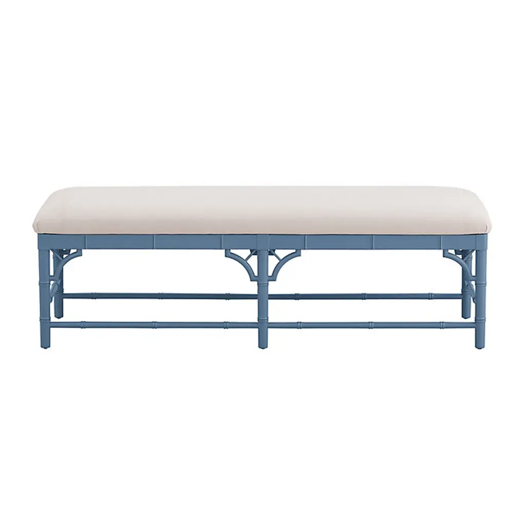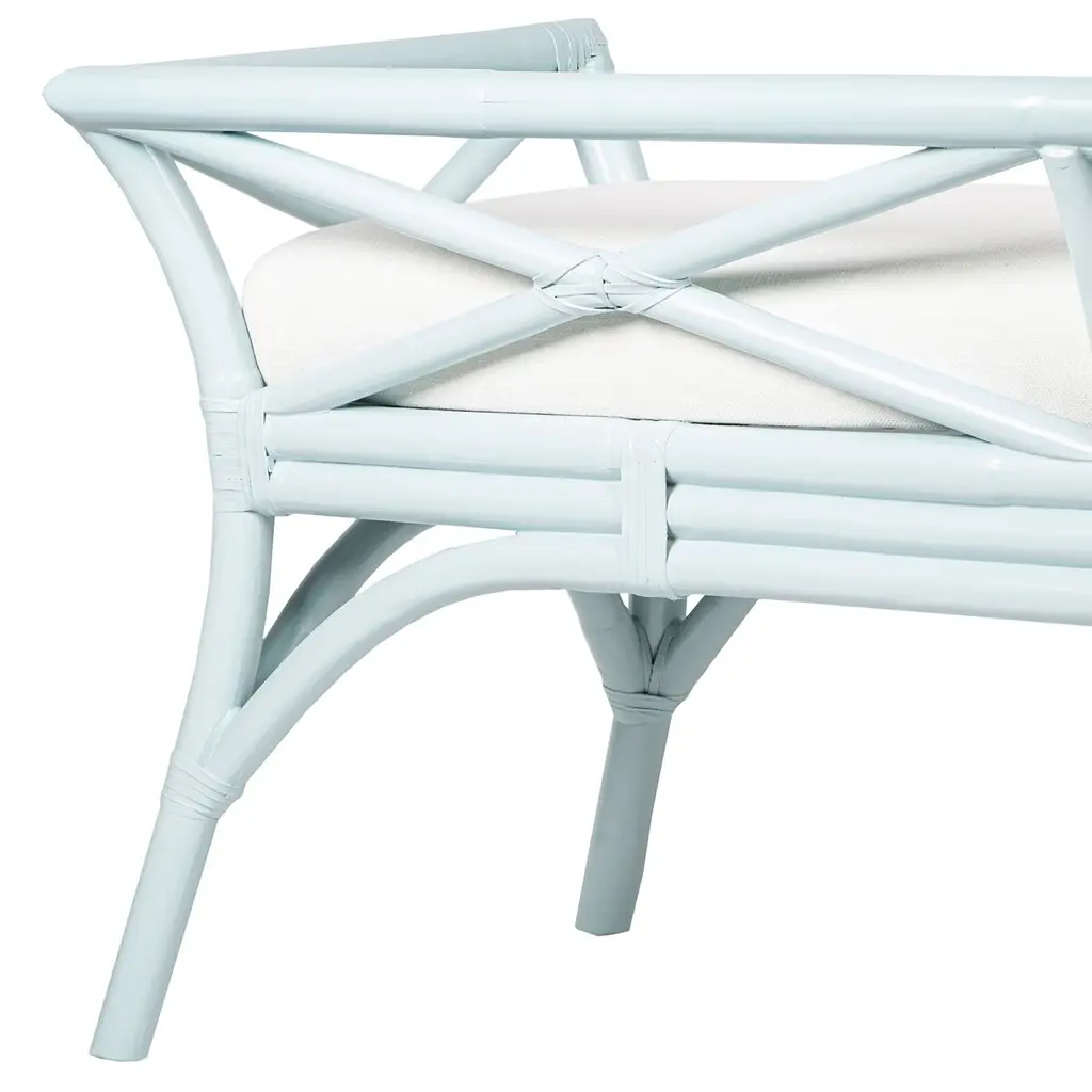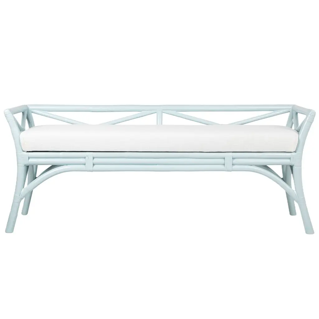 The clean lines of the Charlotte Bench are sure to add elegance to any home. The Charlotte bench is constructed with a Rattan frame and hand-wrapped with leather bindings at all joints. This bench features a tight upholstered seat and is covered in an inside-out performance fabric. The fabric is fade-resistant, bleach-cleanable, soap and water-cleanable, stain-resistant, liquid-resistant, and quick-drying. The furniture frame and cushions are finished and sewn to order at our Florida factory.