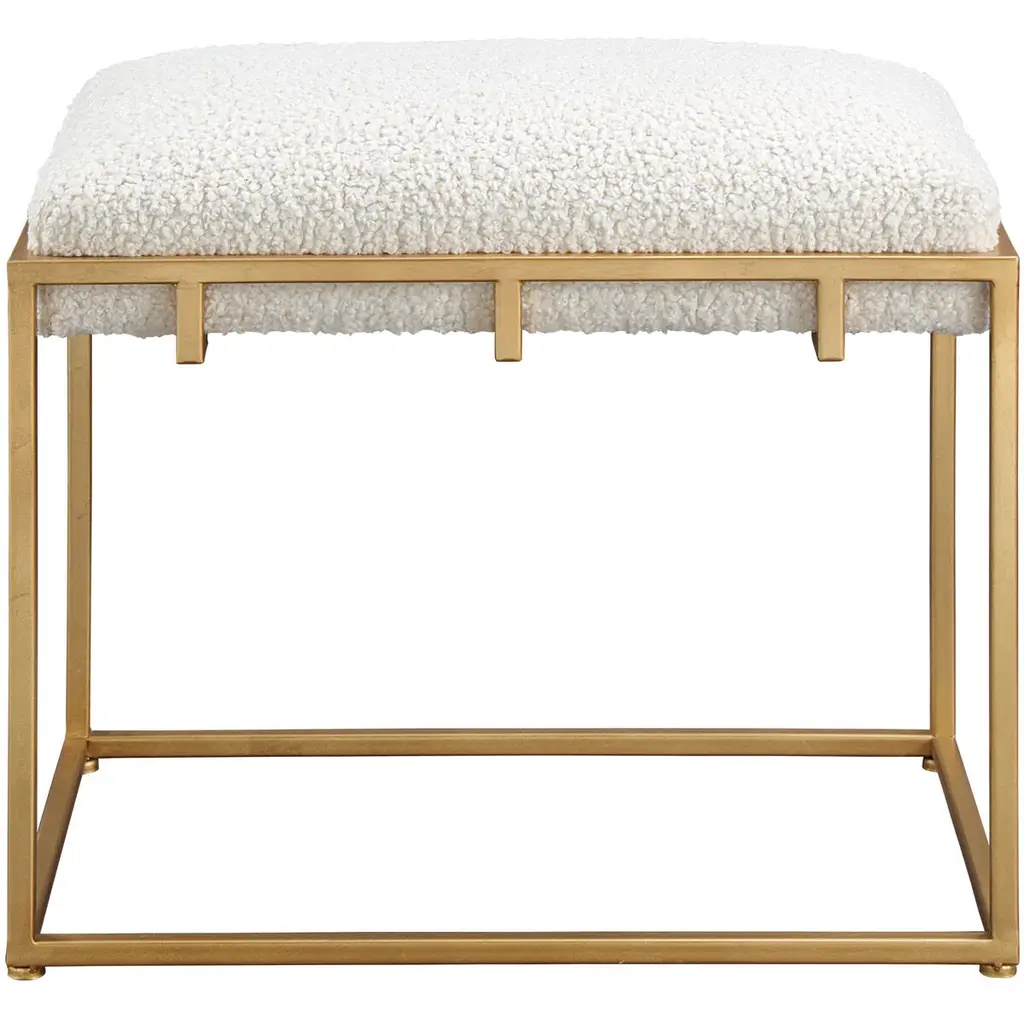 Charmed Cream Faux Sheepskin And Soft Gold Bench