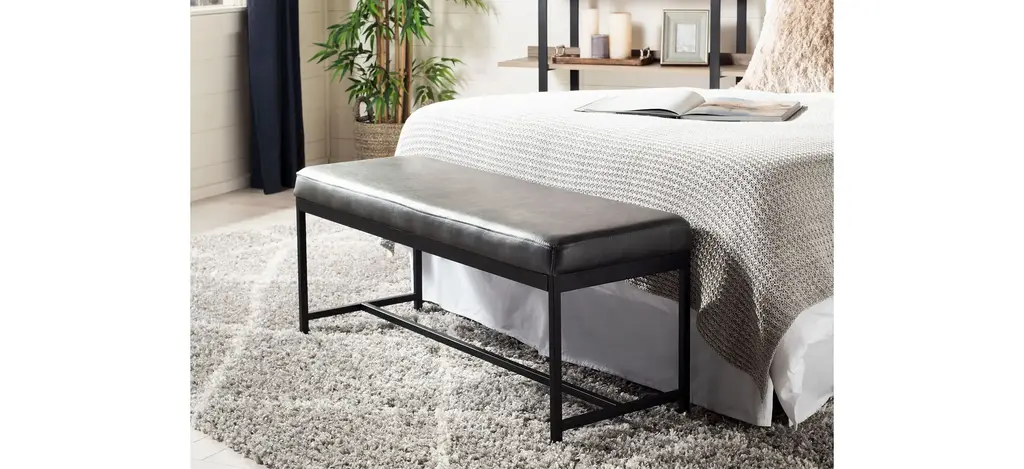 Designed for maximum versatility, this stylish Chase Faux Leather Bench is a perfect upgrade to any living room. Its generous rich brown upholstery and sleek black metal legs complement any dcor. Use as extra seating or for a tabletop for impromptu snacks.