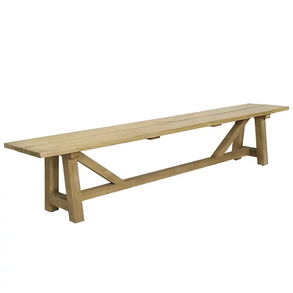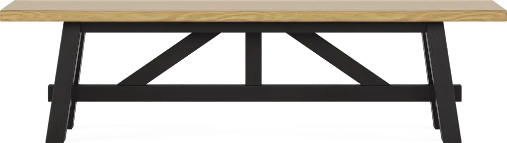 Quiet, intimate dinners by candlelight give way with casual ease to popping corks and gatherings of lively revelers with the Chastain Park collection's dynamic design and charming details. This modern bench features a chevron seat top in a natural finish and a rich black trestle base for a striking contrast.