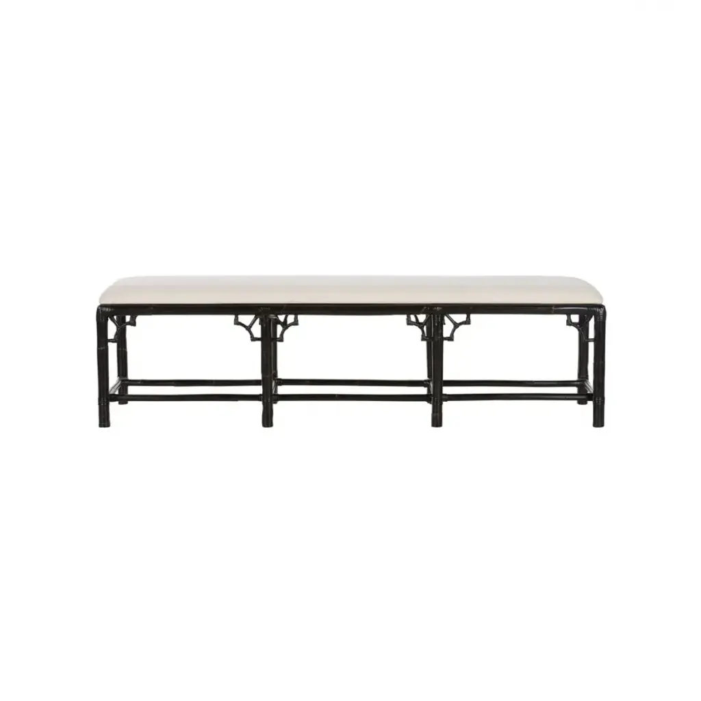 This handsome rattan bench showcases the classic Chippendale style with intricate latticework and timeless elegance, blending natural texture with refined craftsmanship.