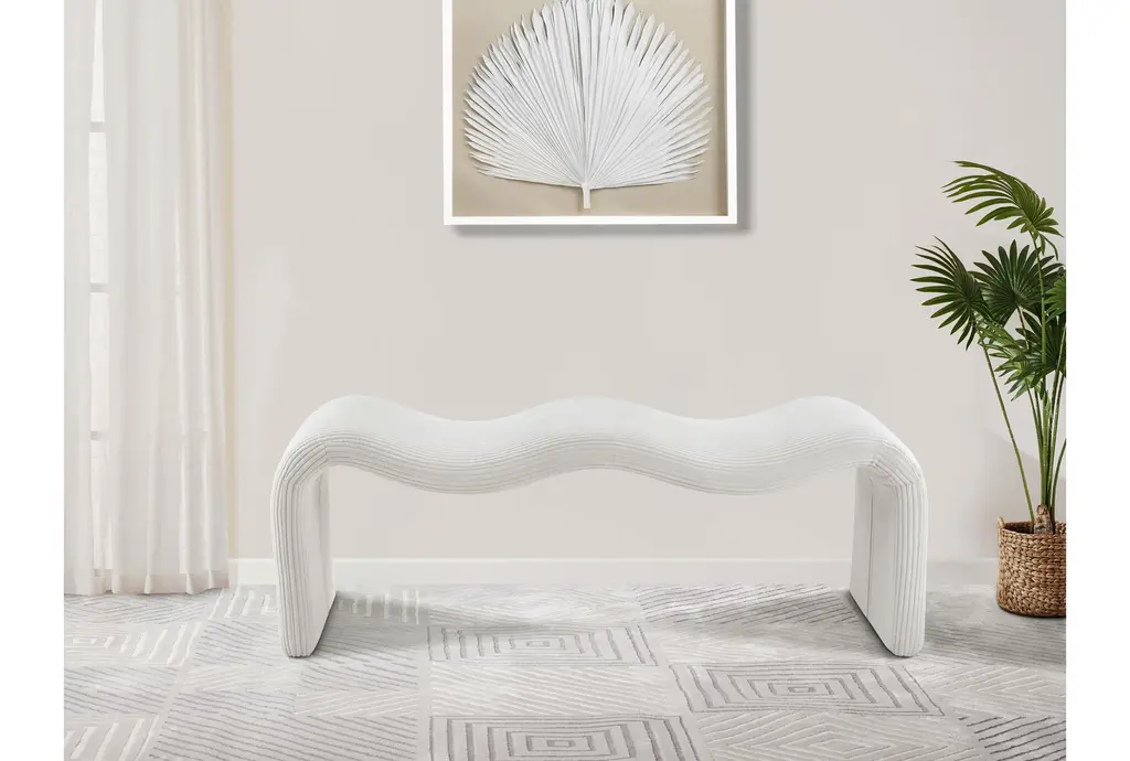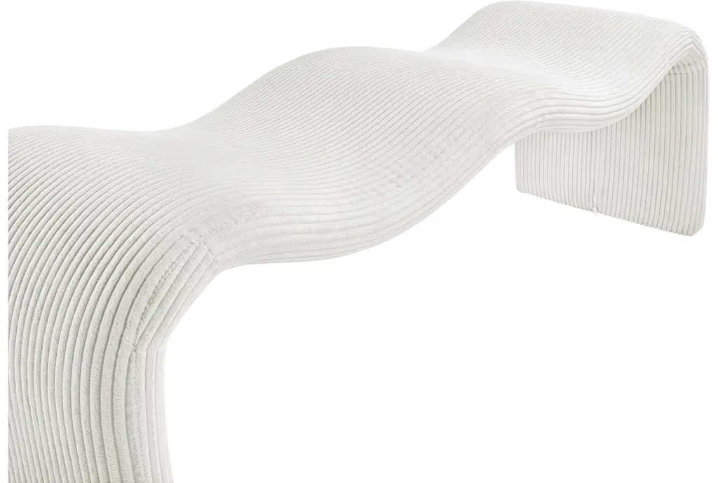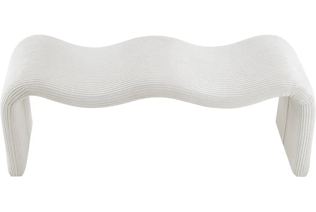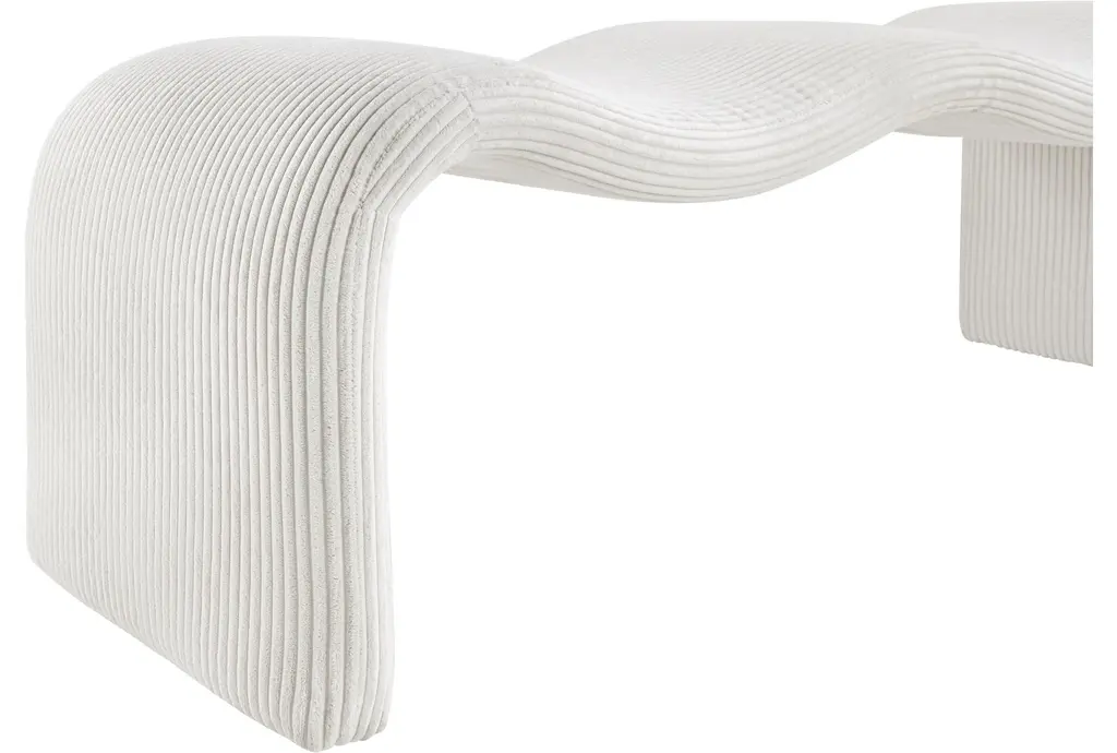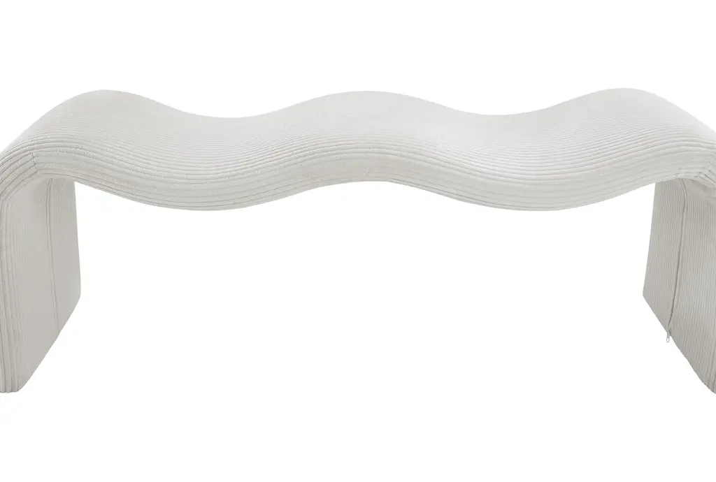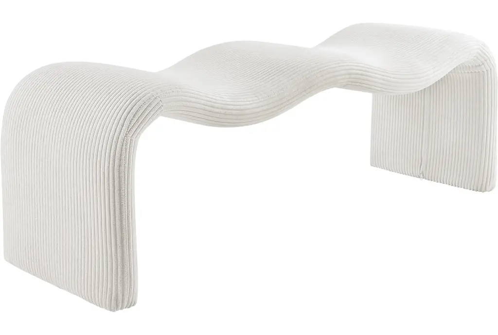 The Cian Cream Corduroy Upholstered Bedroom Bench is a stylish addition to any bedroom or entryway. Its modern design and curved shape make it a standout piece that complements various room styles. The cream velvet upholstery adds a touch of softness and comfort to your space.