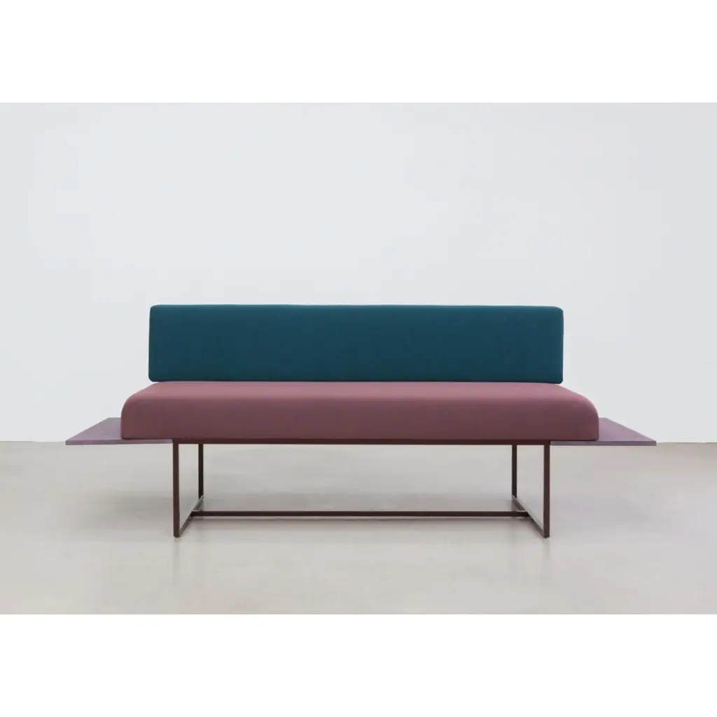 Circus bench by Llot LlovDimensions: W 48 x L 210 x H 79 cmMaterials: powder coated steel, fabrics, birch woodLLOT LLOV produce exclusive furniture and objects for private or corporate clients and also manage interior design projects such as hotels or offices. In addition, the duo has been running a shop for fashion and accessories in Berlin-Mitte with BAERCK since 2007.