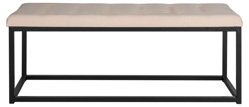 A luxe addition to an entryway or at the foot of a bed, this chic bench combines a sumptuous button-tufted seat with an interlocking iron frame. Elevated on a Parsons-style frame, it offers generous padding for outstanding style and support.