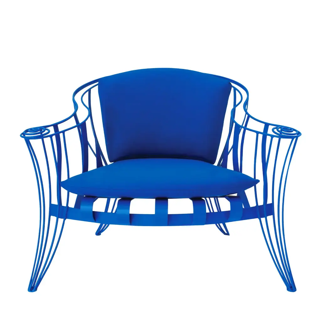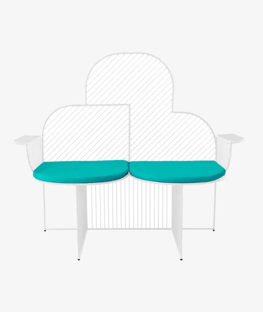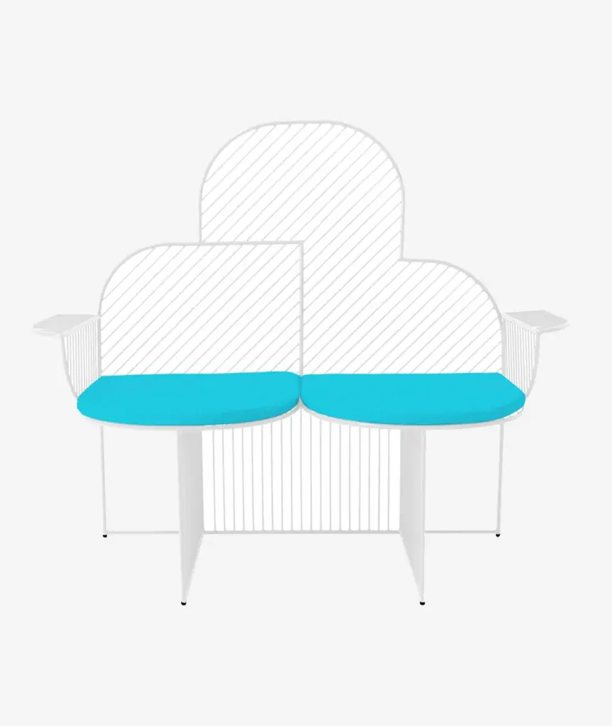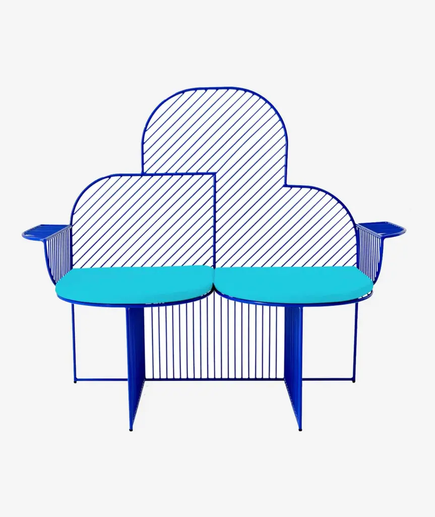 Made to inspire a smile and a photo-op, The Cloud Bench is a bold, fun, and friendly wire lounge chair that sits two. With sunbrella padding and a cloud shape, this seat is perfect as outdoor garden furniture or a lounge chair for a porch or patio. The simple wire design and playful shape make this a contemporary classic.