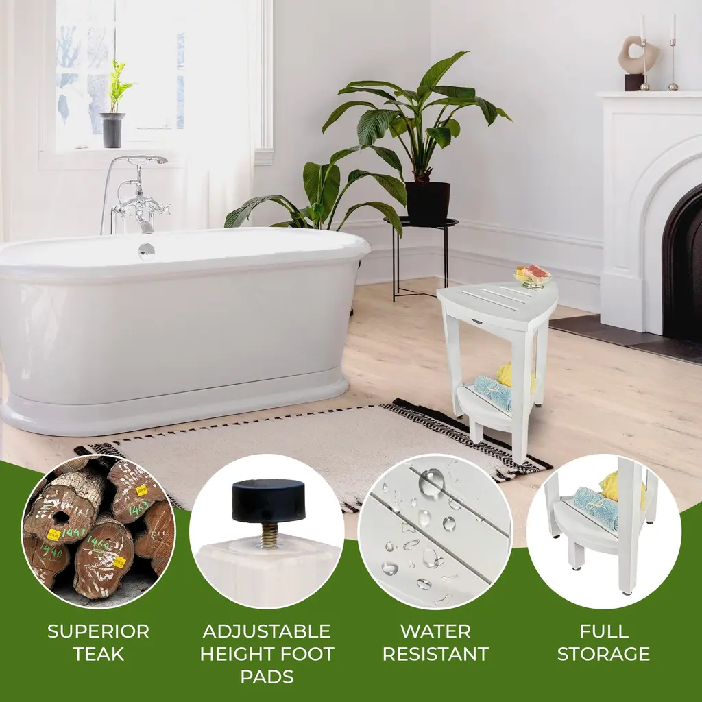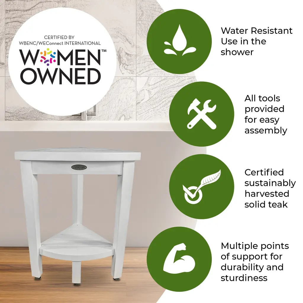 Coastalvogue Compact Solid Teak Corner Shower & Shaving Bench- Coastal Driftwood Finish - Off White/ With Brown Variations