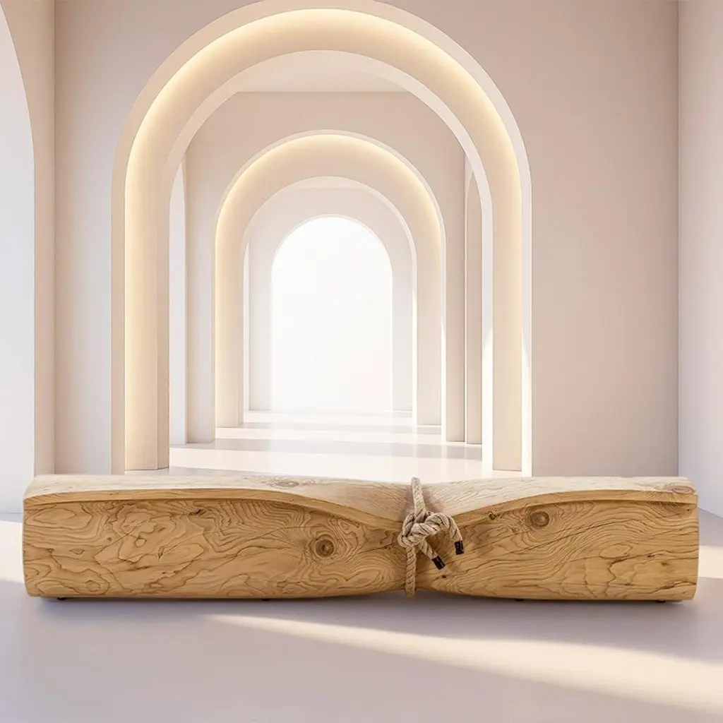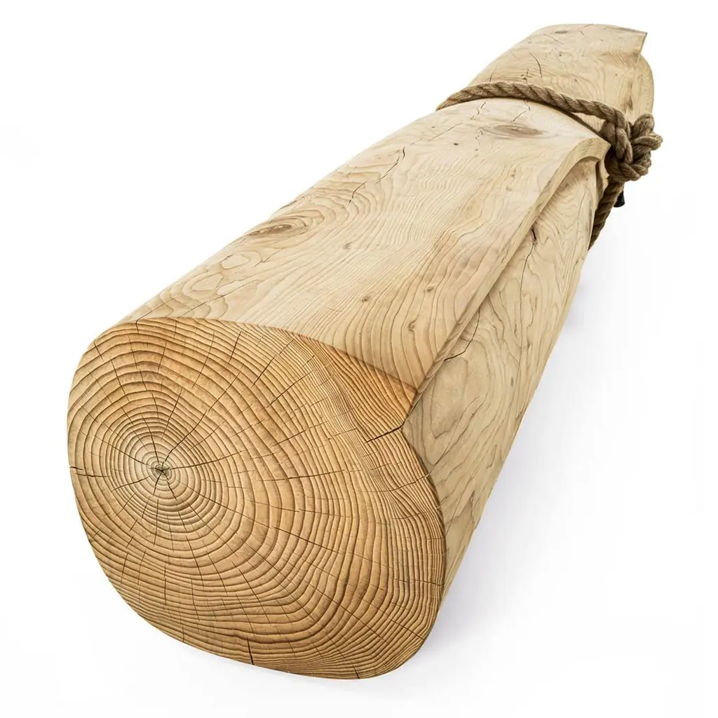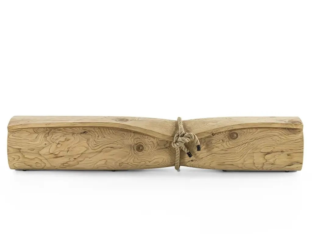 Bench Coated Cedar all made from 1 single blockof cedar wood carved and ornamented with a off-centernautical rope. Natural aromatic solid cedar, treated with natural pine extracts wax.Solid cedar wood include movement, cracks and changes in wood conditions, this is the essential characteristic of natural solid cedar wood due to natural settlement and different environmental conditions.