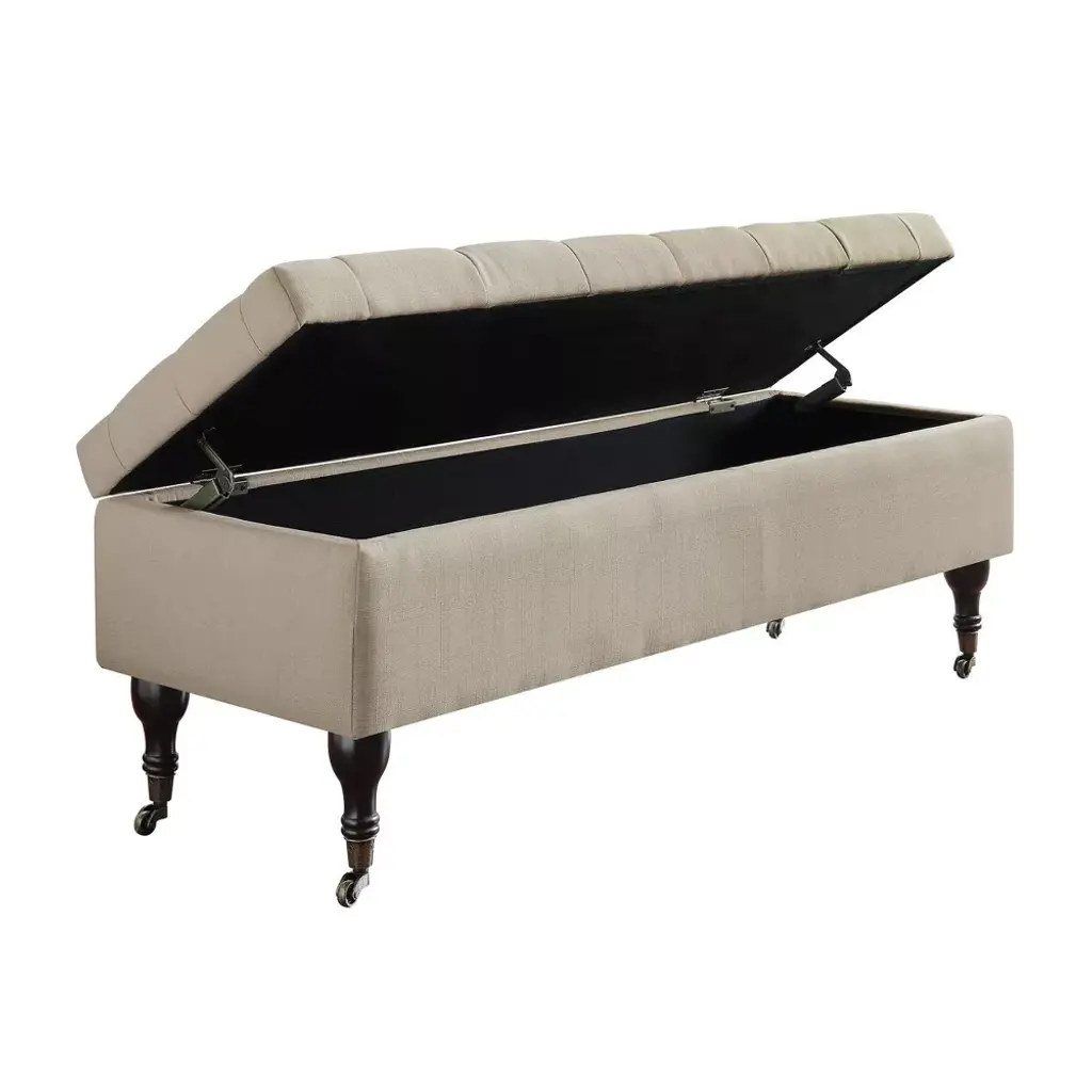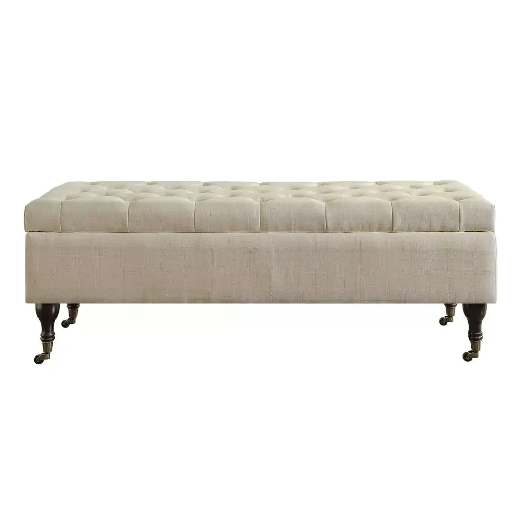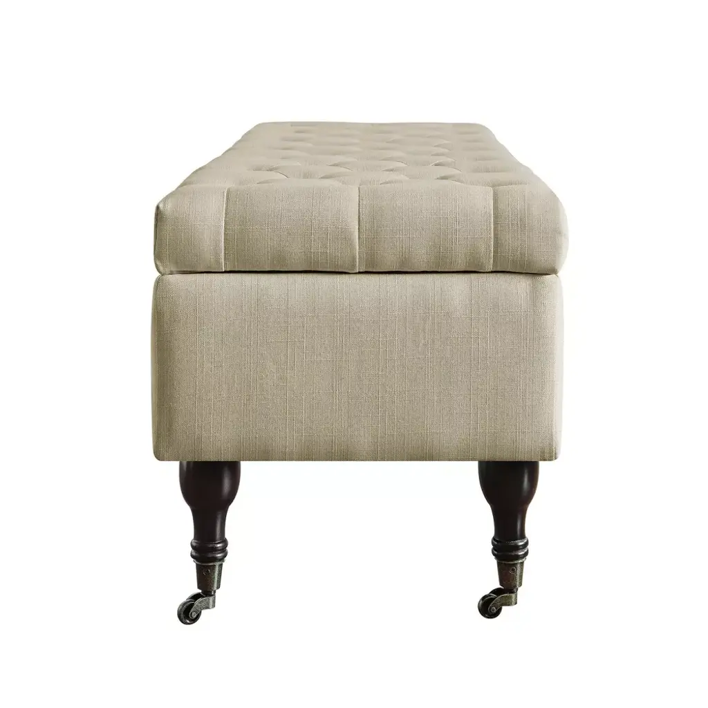 Collette Tufted Bench With Storage Butter Cream - Adore Decor: Mid-century Modern, Polyester Upholstery, Wood Frame