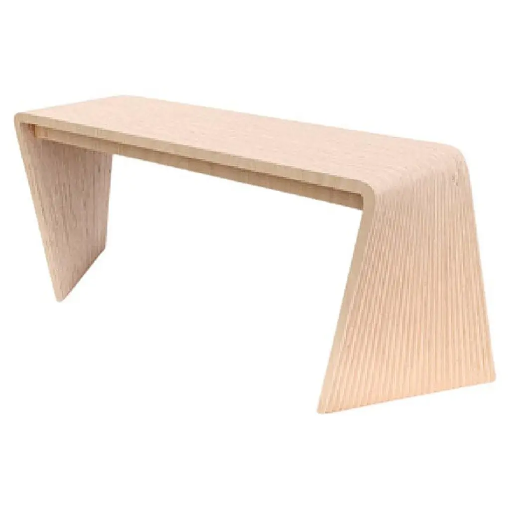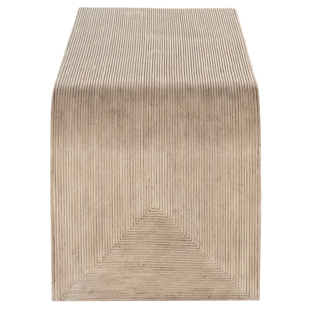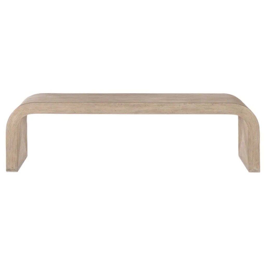 In a tranquil arched rectangle form, this bench brings serene style to any space. Featuring a ridged design, the bench has a triangle motif on the bottom of each side.