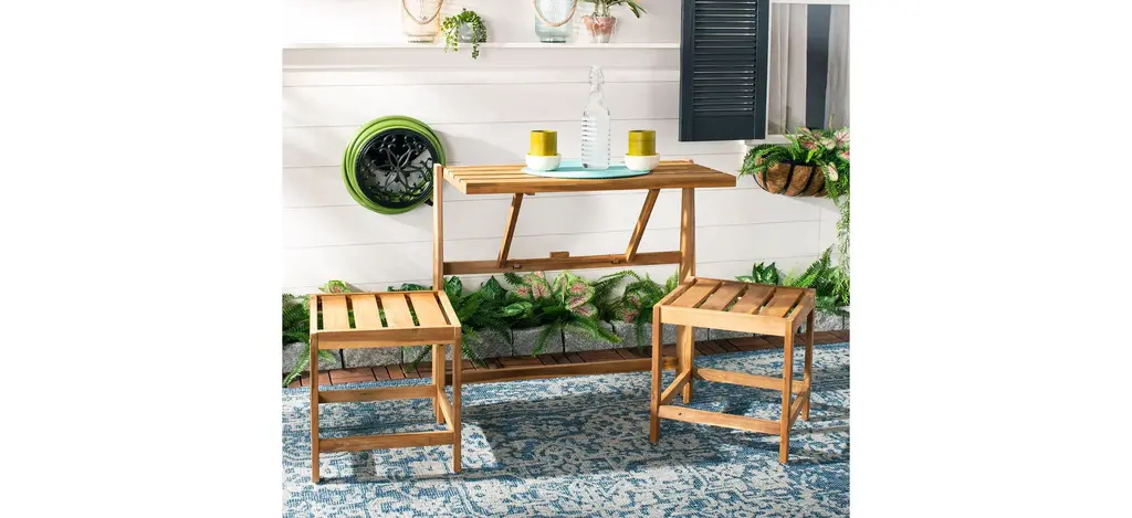 Enjoy the magic of any season with the Conan transformer bench. Designed with form and function, it converts from seating to a table to create an inviting spot for relaxing or dining. Its natural colored construction adds warmth to any outdoor space.
